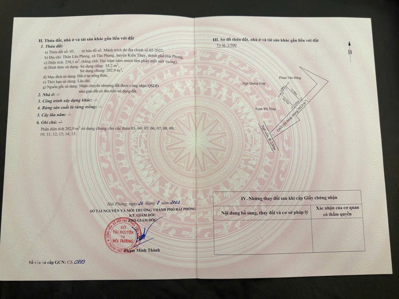 -Diện tích: hơn 55m²/lô-Mặt tiền: 5m-Đường/ngõ: ngõ rộng hơn 3m, ô tô vào tận nơi-Vị trí: Tân Phong – Kiến Thụy – Hải Phòng-Khu dân cư: hiện hữu, mật độ xây dựng ổn định-Kết nối: thuận tiện di chuyển ra các trục chính khu vực-Hiện trạng: đất trống, đã chia lô rõ ràng-Pháp lý: có giấy chứng nhận