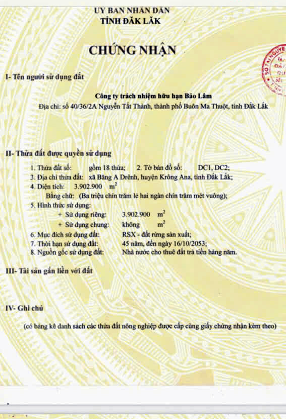 500 ha đất thuê còn 30 năm kề Tỉnh lộ 690, giáp đập Thủy lợi - Huyện Krông Ana - Đăk Lăk, giá chỉ 25 tỷ