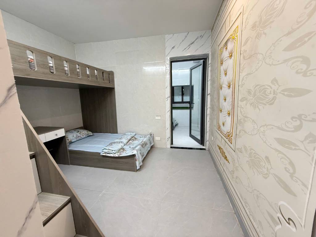 Nhà thiết kế 2 phòng ngủ, có giường tầng thành 3 phòng ngủ, phòng khách, bếp, vệ sinh, cực kỳ thoáng sáng.