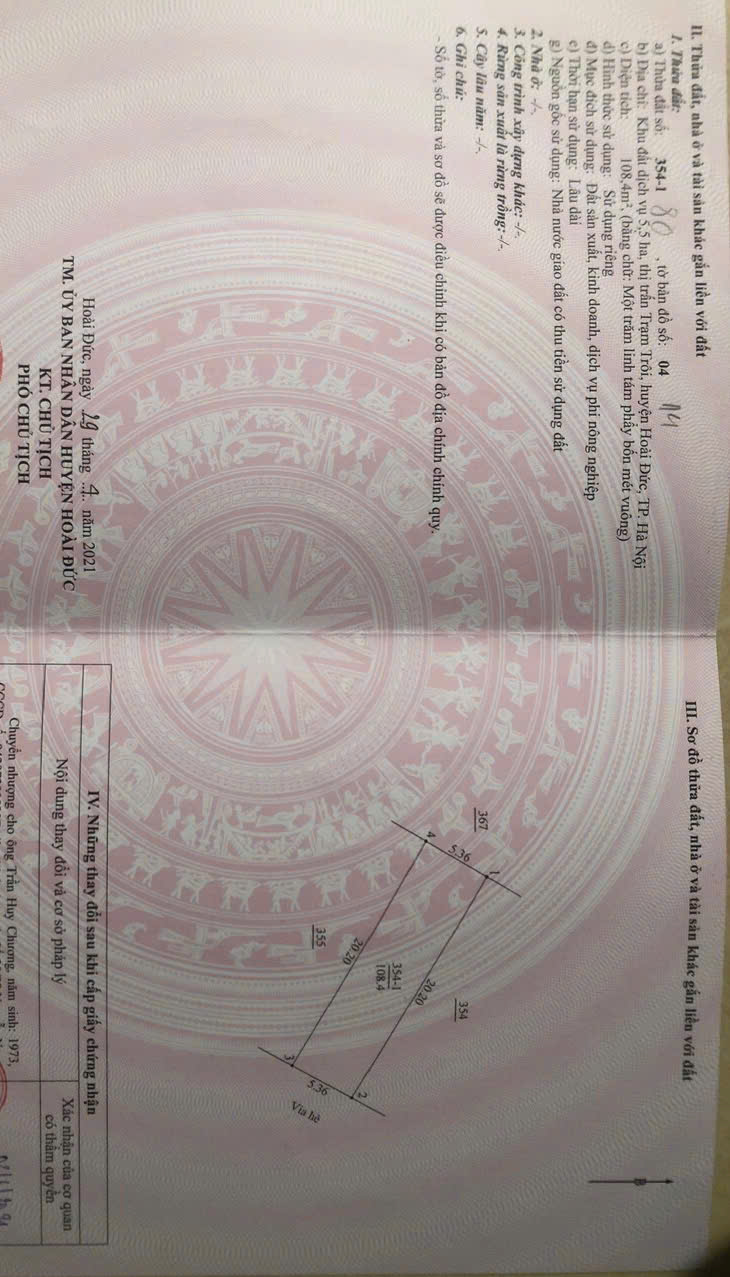 Đất dịch vụ 5.5 Trạm Trôi, 108,4m² – mặt tiền 5,36m.