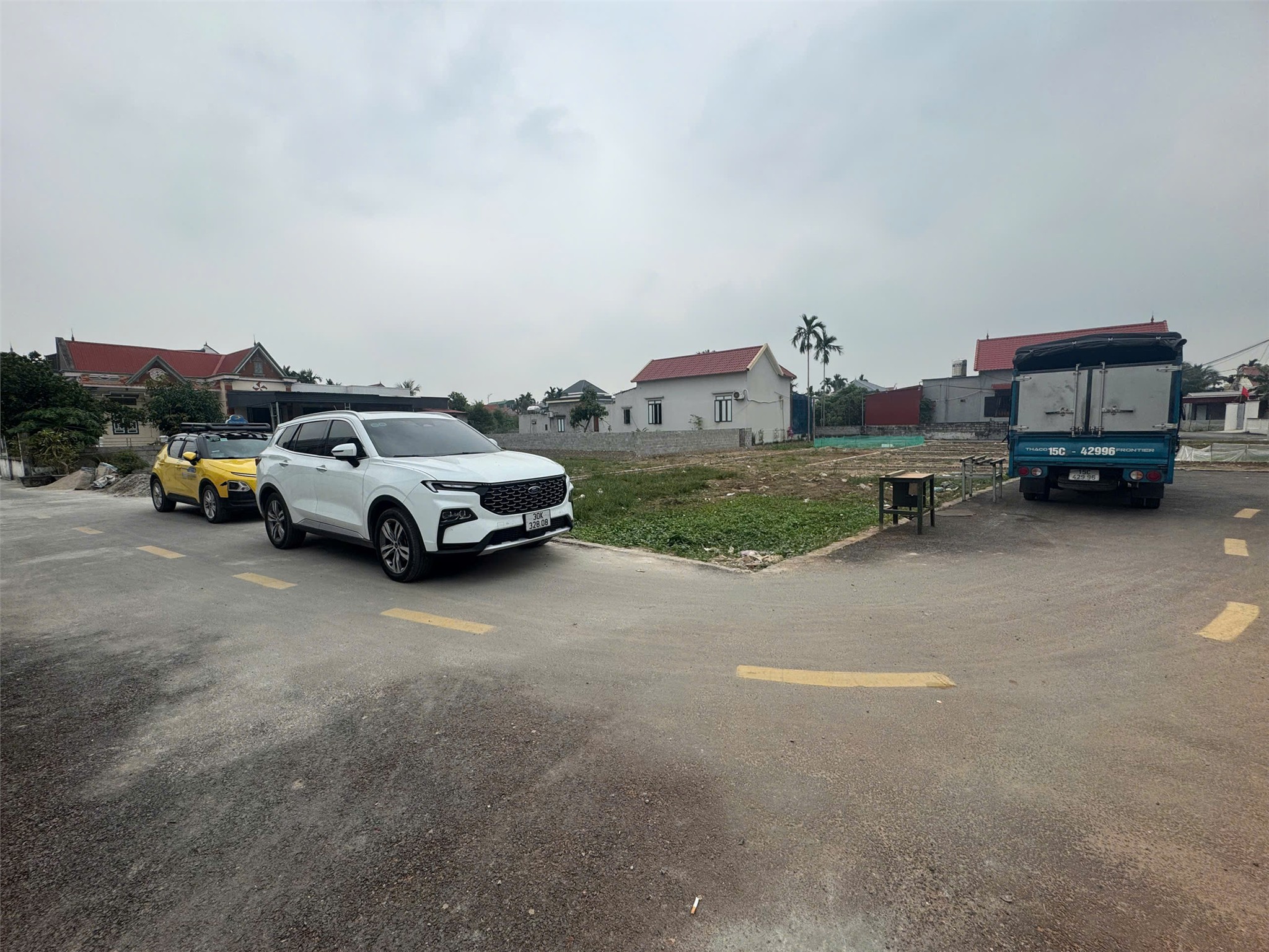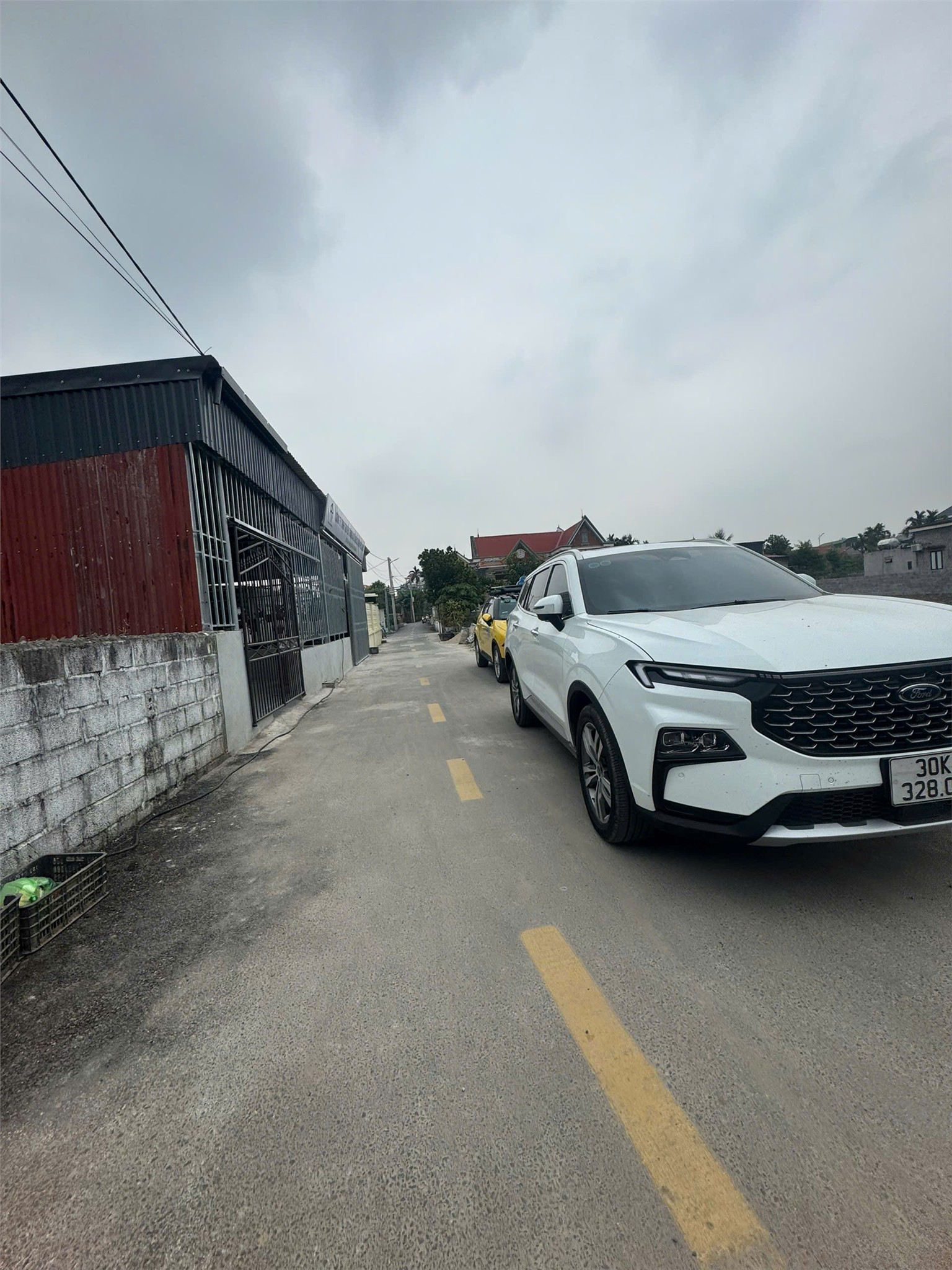 -Đường trước đất: Mặt đường thôn trải nhựa, ô tô tránh nhau