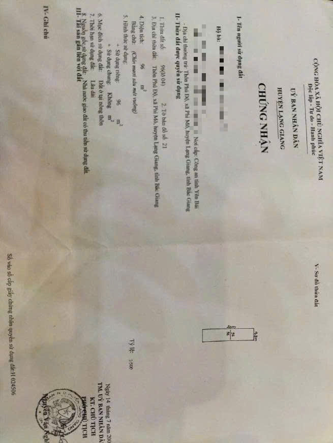 Loại đất: Đất thổ cư, sổ đỏ đầy đủ