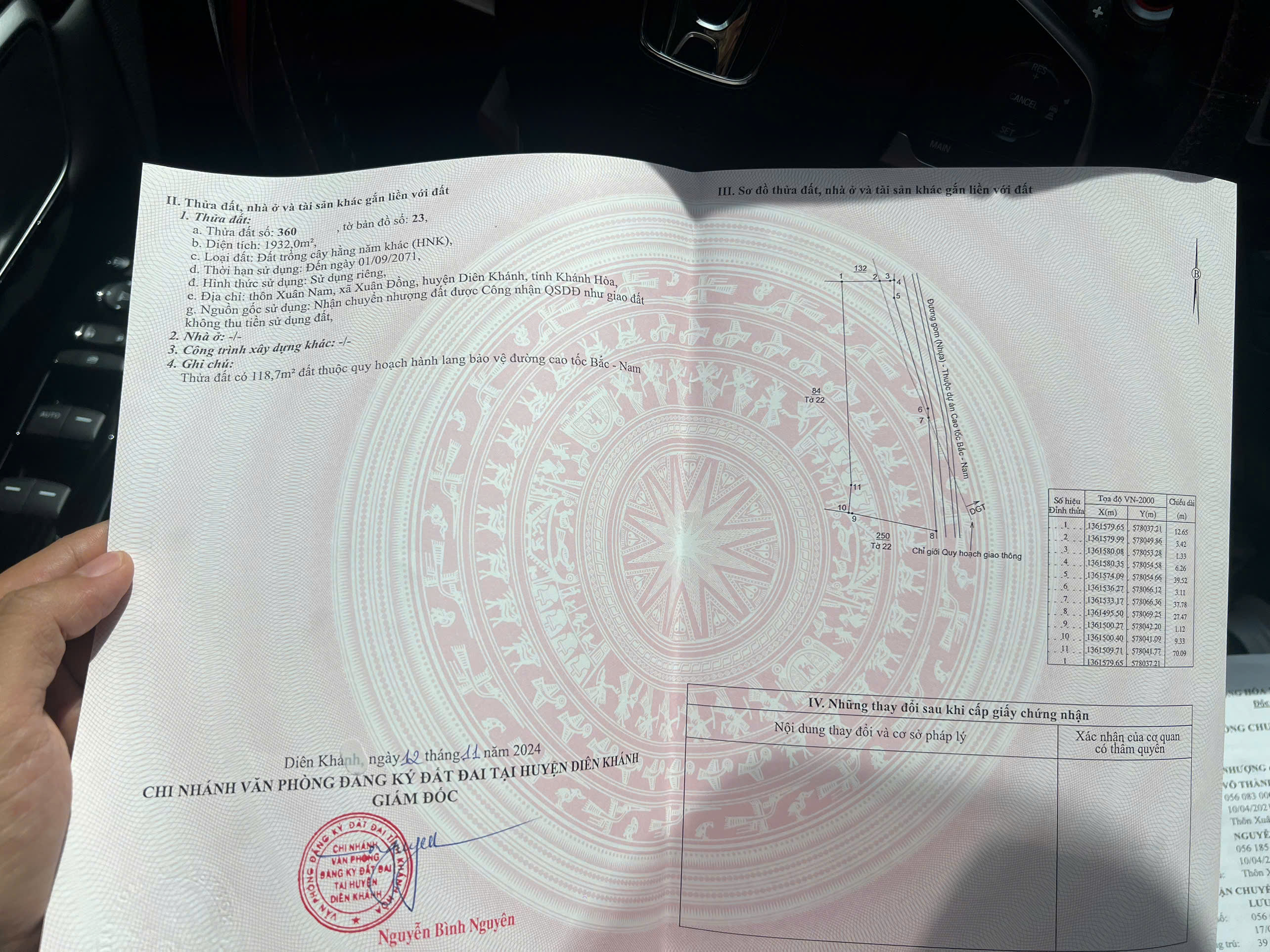 Bán lô đất Diên Đồng - Mặt tiền đường nhựa - Gần Cao Tốc Bắc Nam - Diện tích : Thửa 360-1 và 360-2: 350tr00/lô lh e Trinh Số chứng chỉ: đang đợi cấp chứng chỉ mới , số chứng nhận: MG 25- 625