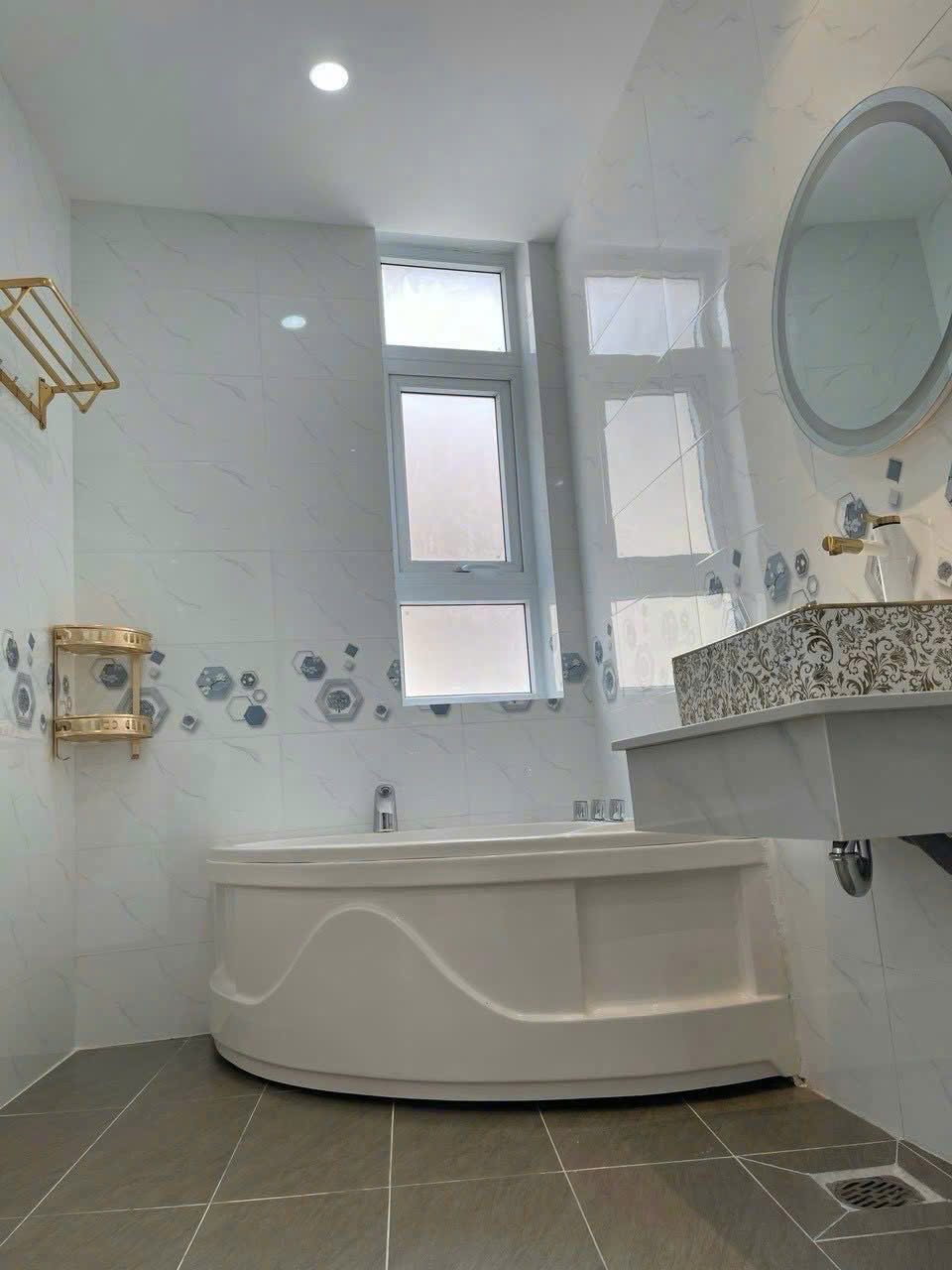 Kết cấu trệt, 2 lầu, sân thượng gồm 6 phòng ngủ.