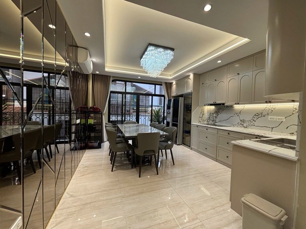 • 06 điều hoà Daikin • Bình nóng lạnh Ariston • Bếp từ & hút mùi Panasonic âm • Bàn đá nguyên khối 100% • Hệ thống rèm kính tự động thông minh