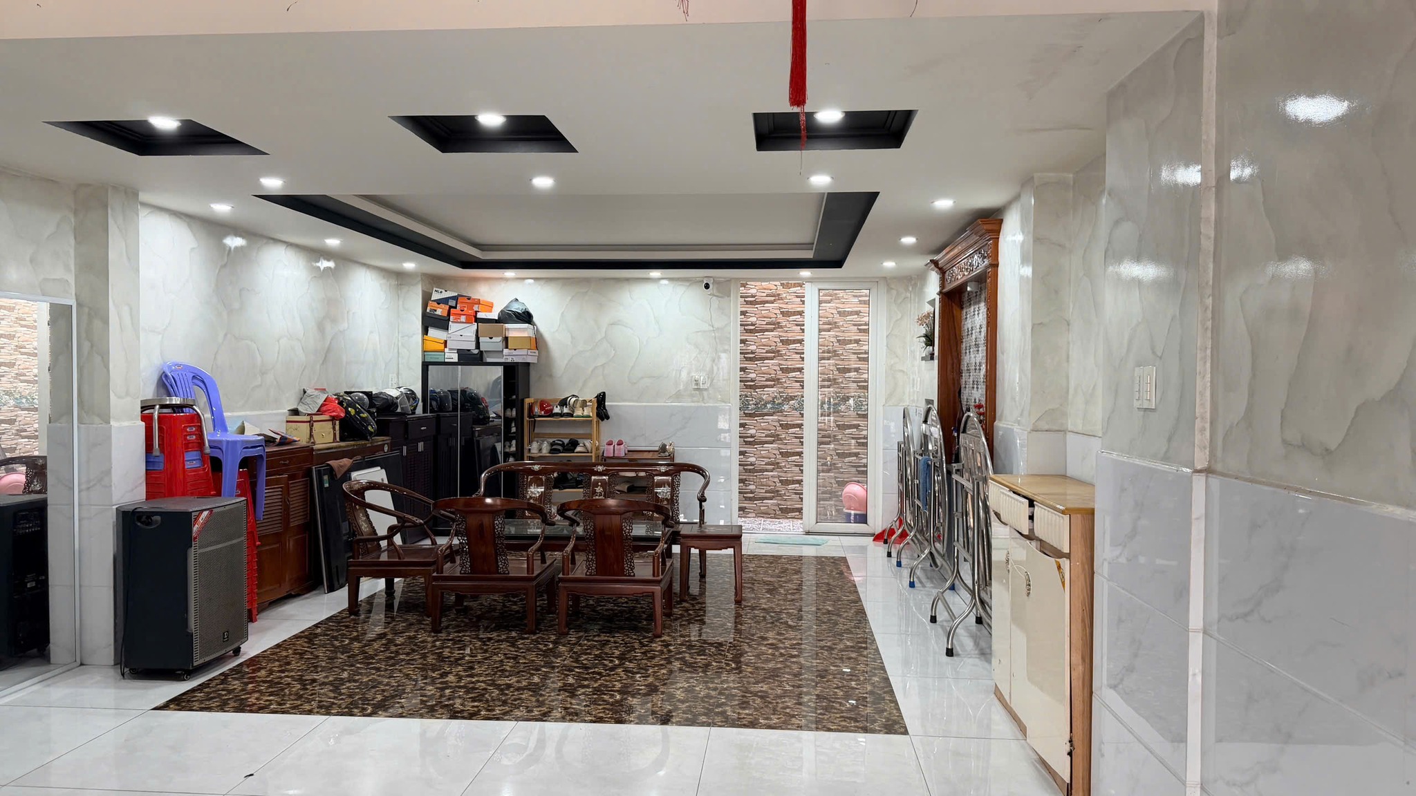• Phòng khách nằm cuối tầng trệt, rộng rãi và riêng tư