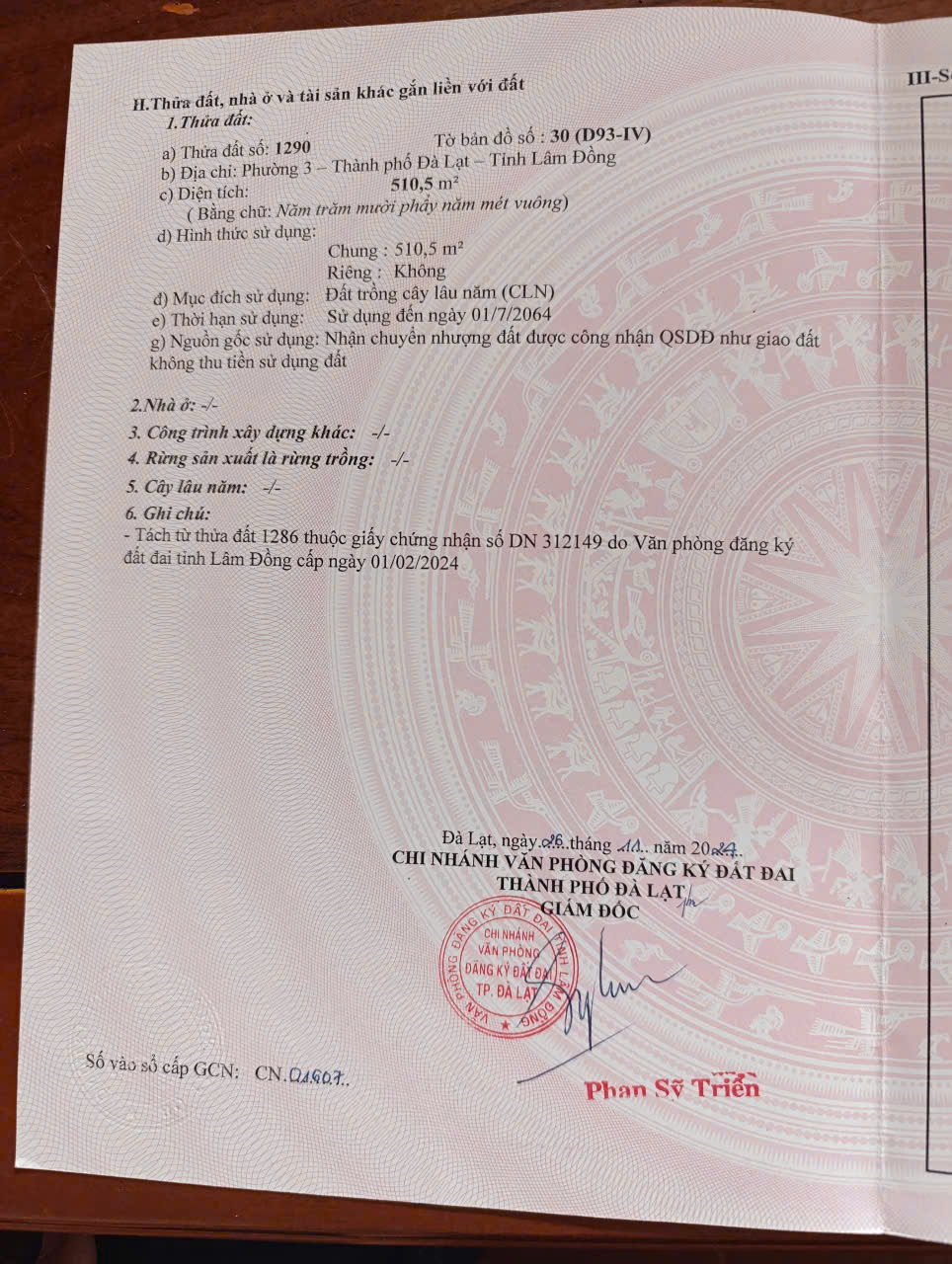 Sổ: Đất nông nghiệp riêng