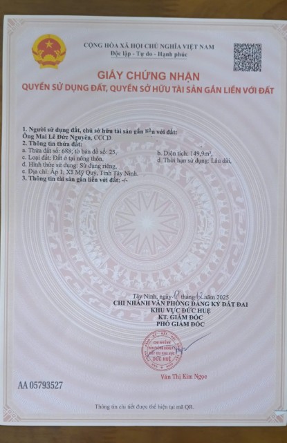 CHÍNH CHỦ BÁN ĐẤT XÃ MỸ QUÝ TÂY, ĐỨC HUỆ, LONG AN (CŨ)