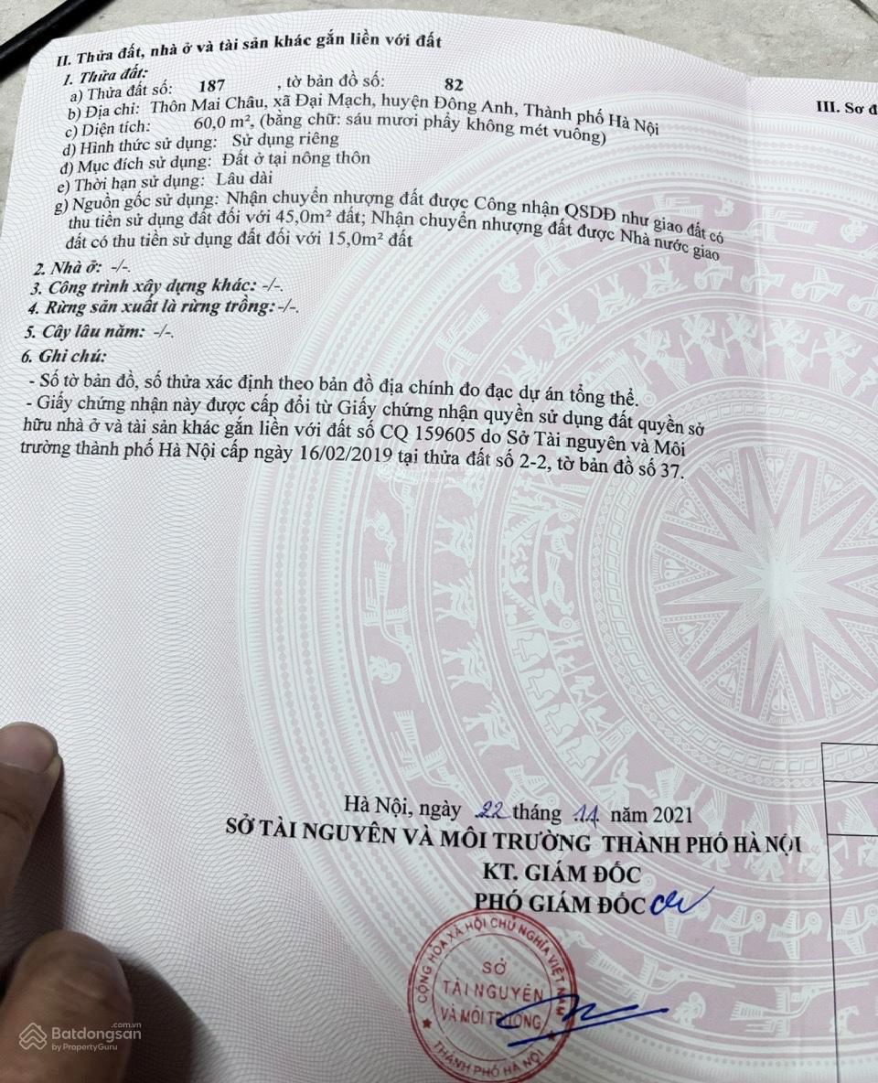 CHÍNH CHỦ BÁN GẤP ĐẤT THỔ CƯ SẴN SỔ TẠI ĐẠI MẠCH-ĐÔNG ANH