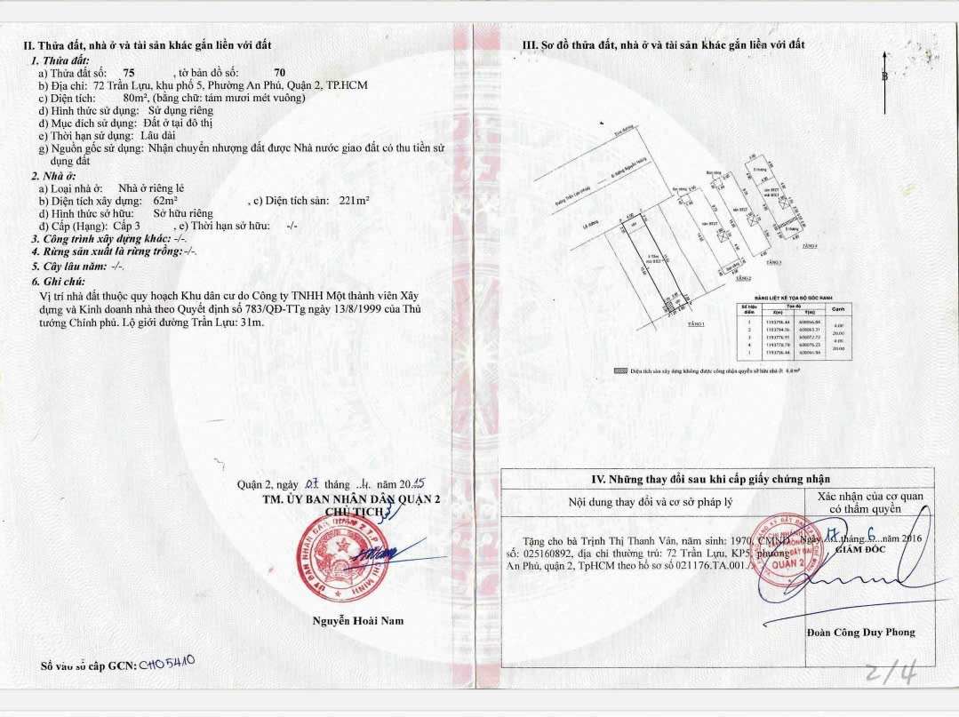 Địa Chỉ: 72 Trần Lựu, Phường An Phú, Quận 2 Diện Tích: 4x20m Công Nhận: 80m2 Hiện Trạng: 4 Tầng HĐT: Trống Giá Bán: 25 tỷ thương lượng