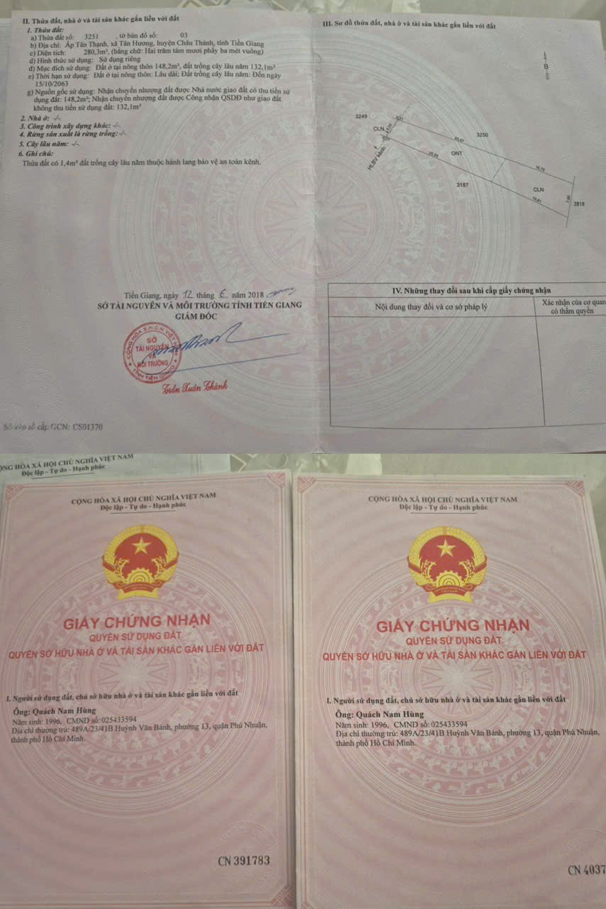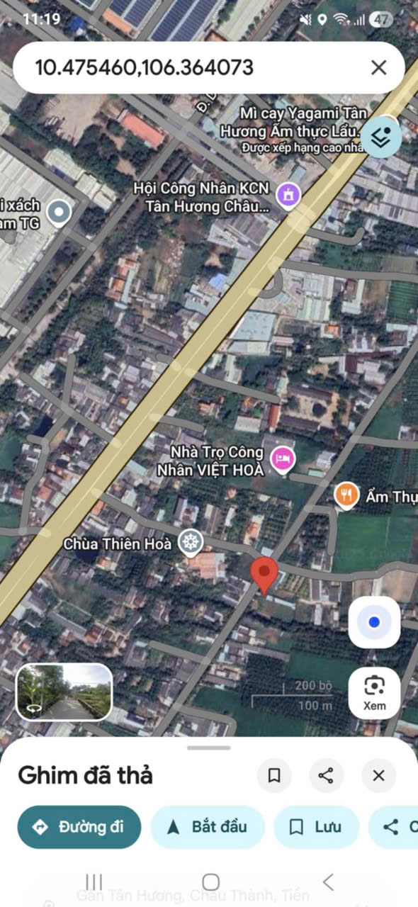 - Địa chỉ: Mặt tiền đường nhựa 7m, gần cổng trước KCN Tân Hương, xã Tân Hương, huyện Châu Thành, tỉnh Tiền Giang