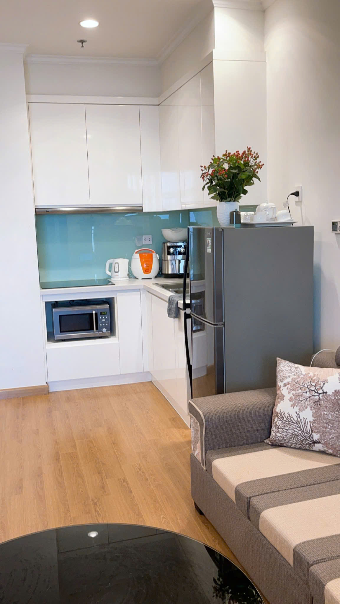 Căn hộ tòa R6-19-16 (55m2) bao gồm 1 ngủ và 1 vs, đã đươc trang bị đầy đủ đồ (như hình đi kèm).