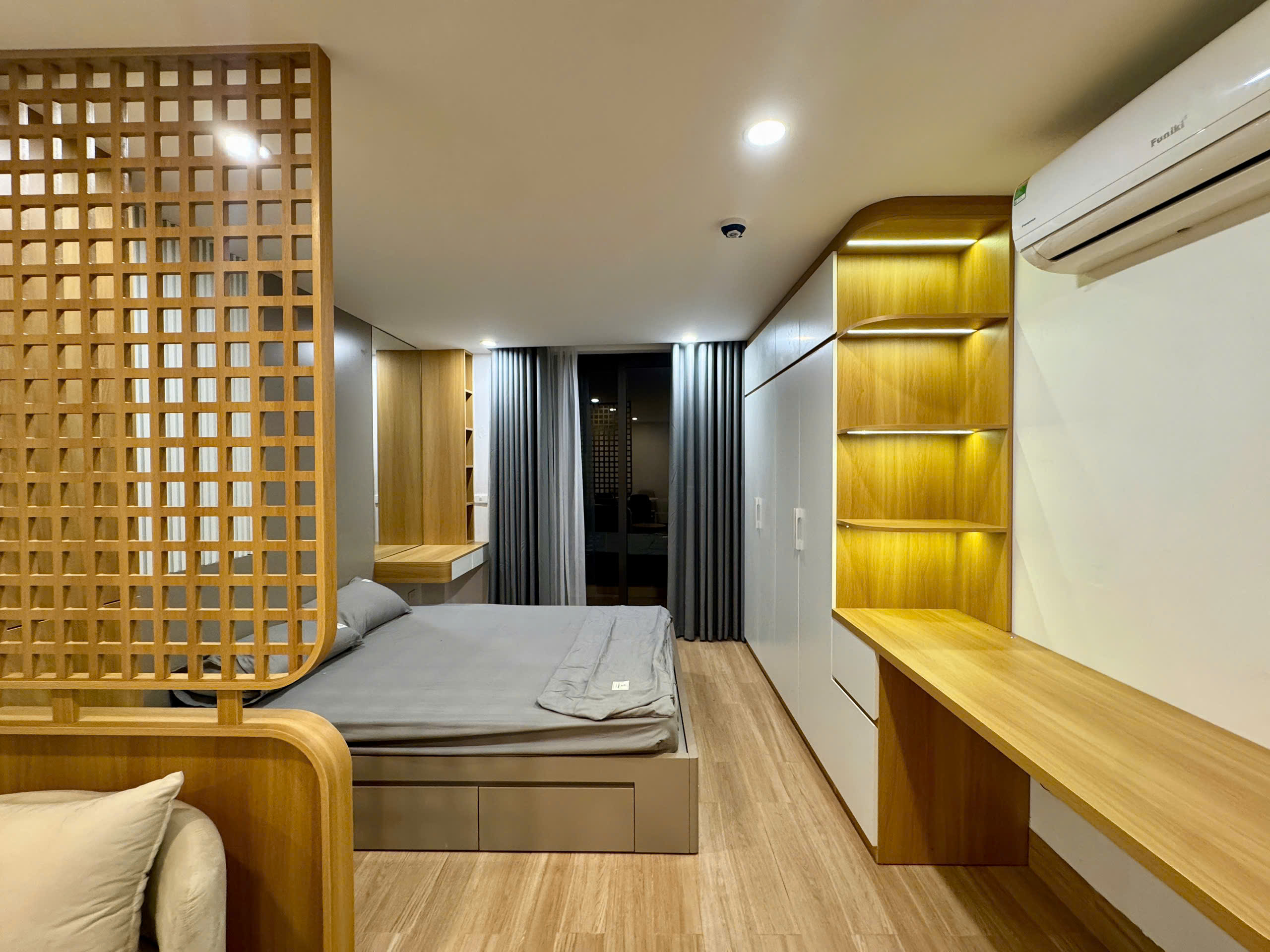 Diện tích: 42m2 • Căn hộ mới tinh 100%, vừa hoàn thiện – chưa qua sử dụng• Thiết kế hiện đại, tối ưu không gian sống• Ánh sáng tự nhiên, thoáng mát, ở cực kỳ dễ chịu Thông tin căn hộ:• 1 phòng ngủ riêng biệt• 1 phòng khách + bếp tiện nghi• 1 WC sạch sẽ, mới hoàn toàn• Có cửa sổ/ban công đón gió và ánh sáng Nội thất full cao cấp:• Điều hòa 2 chiều, Smart TV• Tủ lạnh, bếp từ, hút mùi, nóng lạnh• Giường, tủ, sofa, bàn ăn, tủ giày…• Internet tốc độ caoGiá thuê hợp lý – ưu tiên khách thiện chí, ở lâu dài Liên hệ chính chủ: 0868016186