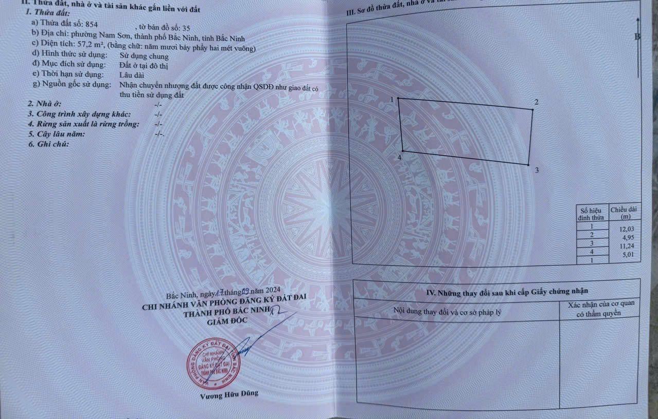 CHÍNH CHỦ GỬI BÁN LÔ ĐẤT THỔ CƯ NAM SƠN – VỊ TRÍ ĐẸP, NGÕ RỘNG♦ Địa chỉ: Phường Nam Sơn, TP. Bắc Ninh♦ Ngõ rộng, thông thoáng – 3 ô tô tránh nhau thoải mái♦ Gần KCN Nam Sơn – Hạp Lĩnh, tiềm năng tăng giá cao♦ Diện tích: 57,2m² (sổ đỏ chính chủ)♦ Mặt tiền: 5m – vuông vắn, dễ xây dựng♦ Mục đích sử dụng: Đất ở đô thị, sử dụng lâu dài♦ Giá bán: 2,x tỷ (có thương lượng)► Liên hệ: 0384 123 668