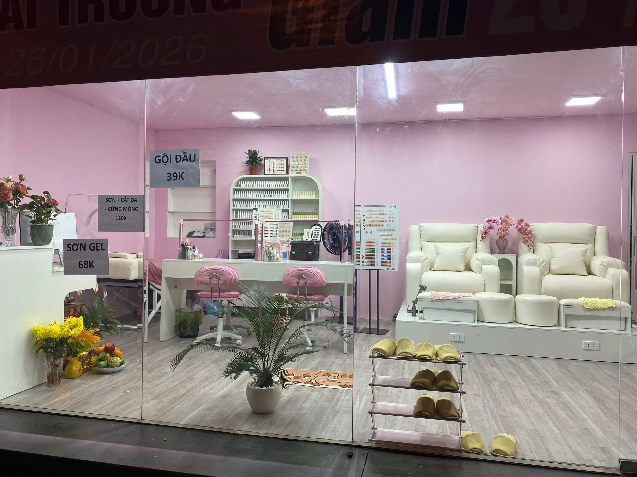 - Tiệm setup gọn gàng, đầy đủ công năng, phù hợp mở spa – nail – mi – gội thư giãn.