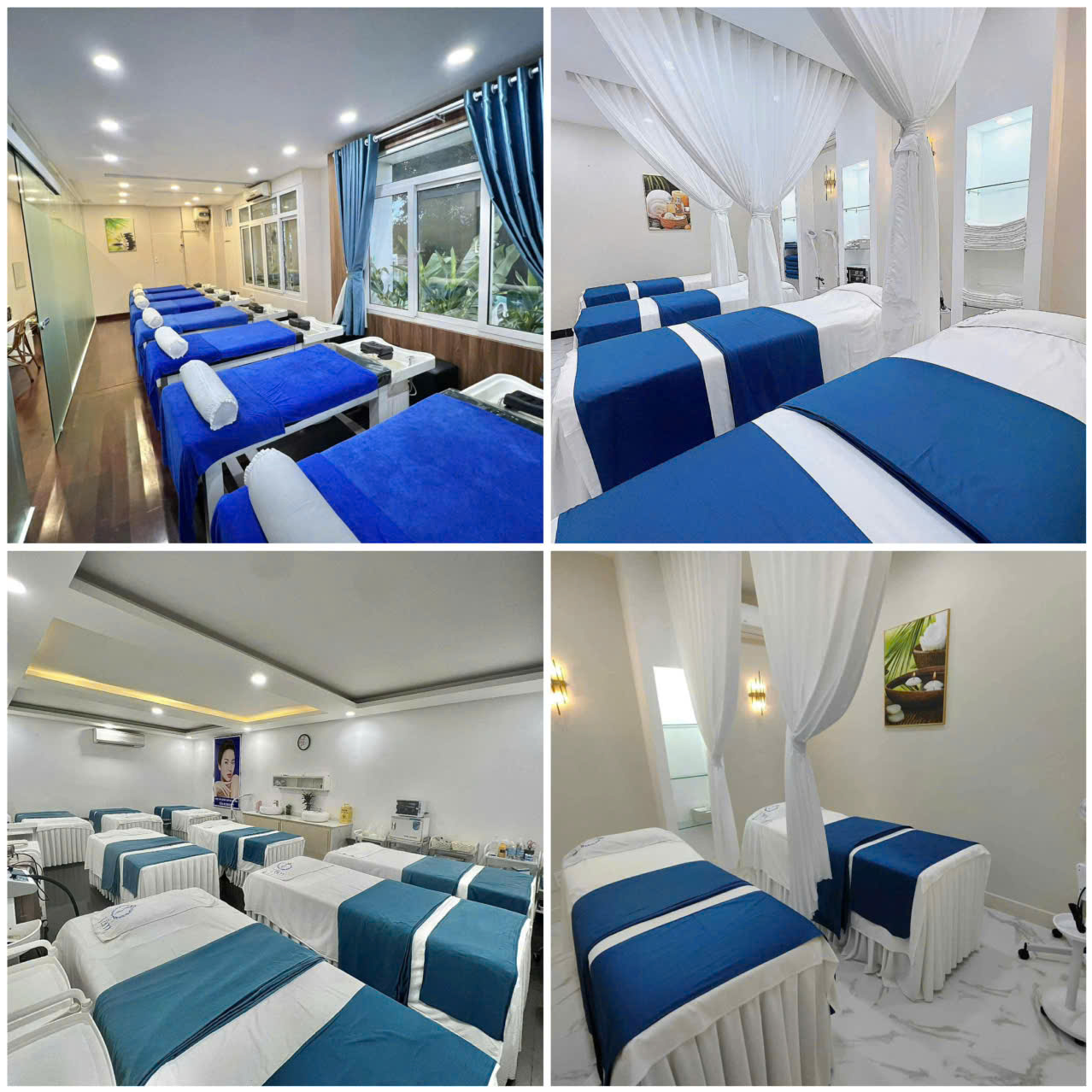 + Khu lễ tân: 2 bộ sofa tiếp khách (sảnh trên & sảnh dưới), tủ trưng bày mỹ phẩm lớn, kệ dép, giường & nội thất dịch vụ,...