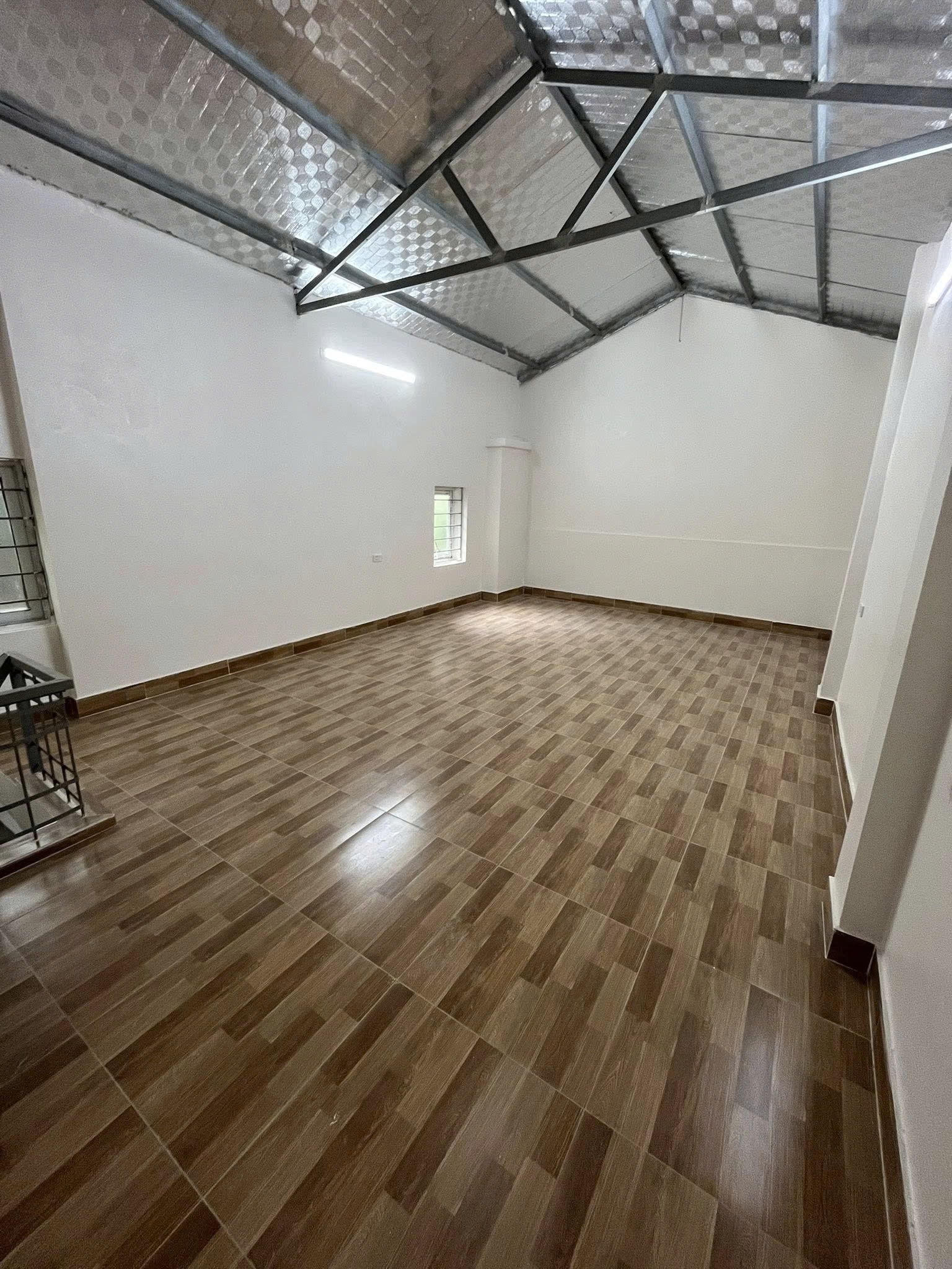 - Tầng 2: Diện tích: 8m². Phía sau cầu thang có thể đặt tủ hoặc 1 giường đơn or bàn nhỏ