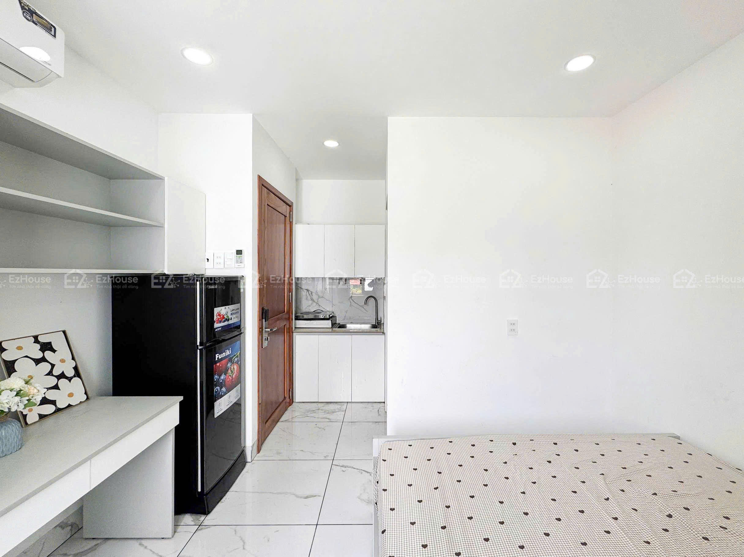 Nội thất đầy đủ: Máy lạnh, tủ lạnh, tủ quần áo, giường nệm, bàn làm việc, bếp từ, nước nóng NLMT, tủ kệ bếp