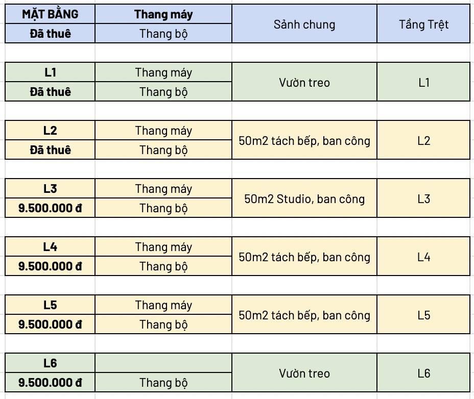 Diện tích: 50m² / tầng Thang máy + thang bộ, di chuyển thuận tiện Nội thất đầy đủ: giường nệm, máy lạnh, tủ lạnh, tủ bếp, bàn ghế, rèm cửa Có thể làm văn phòng hoặc để ở – hỗ trợ set up nội thất theo nhu cầu (không tính phí)