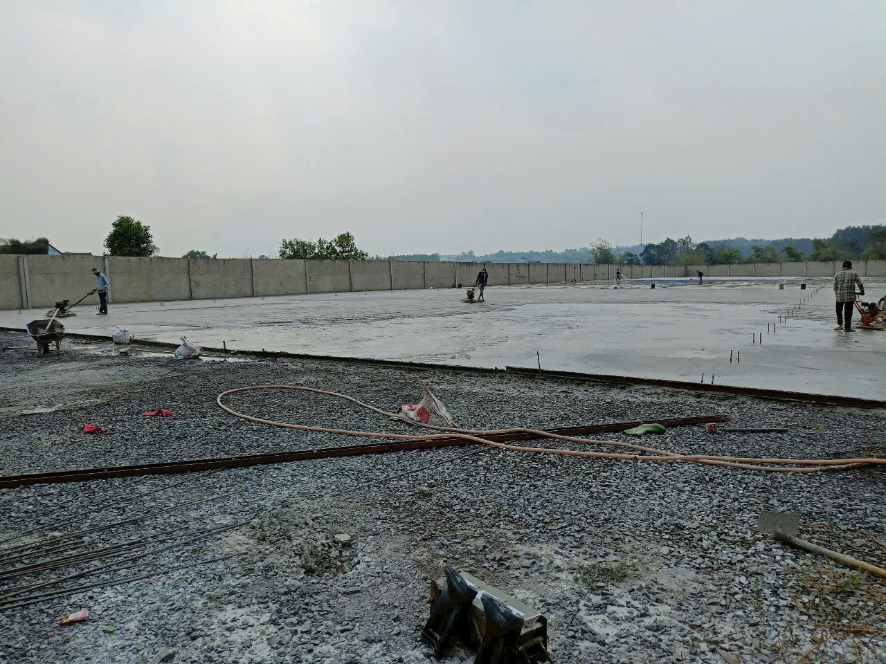 Đất vuông vức . Đã xây tường rào và sân đổ bê tông bằng phẳng .
