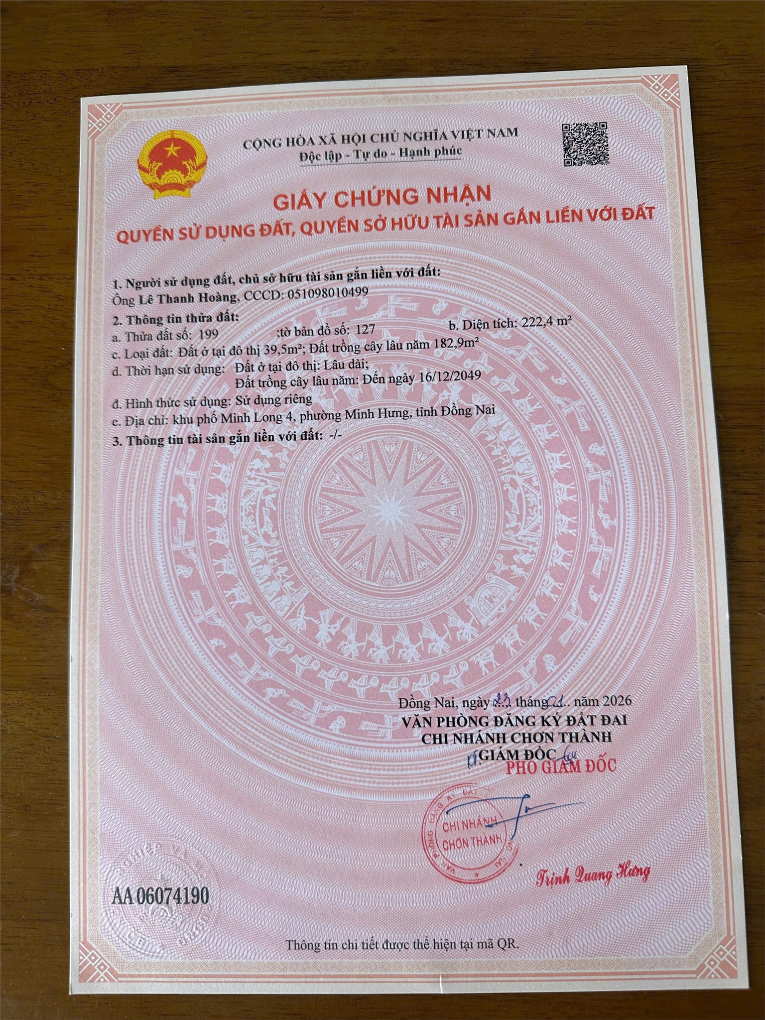 Diện tích: 222,4m2 thổ cư 39,5m2
