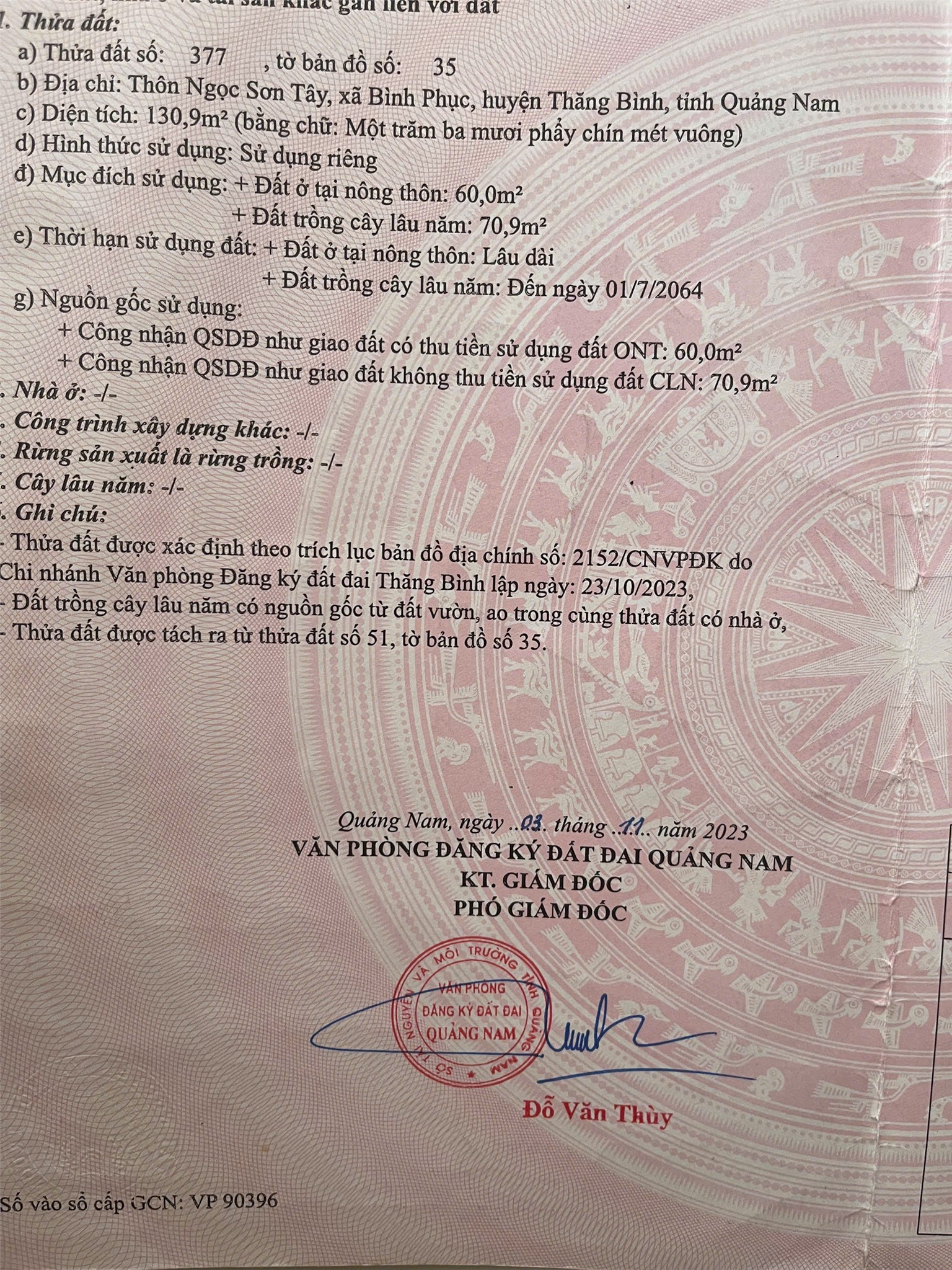 ** Diện tích: 130,9m2 thổ cư 60m2