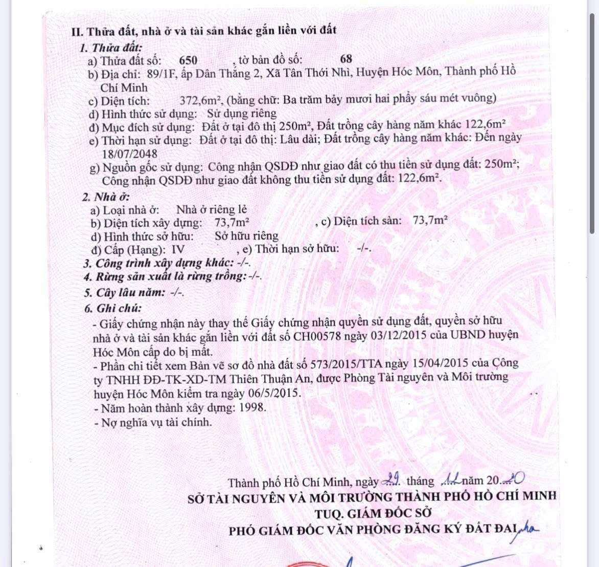 ĐẤT KHỦNG TẶNG NHÀ C4 (9.5X40) MẶT TIỀN TÂN THỚI NHÌ 02 – CÁCH QL22 CHỈ 100M