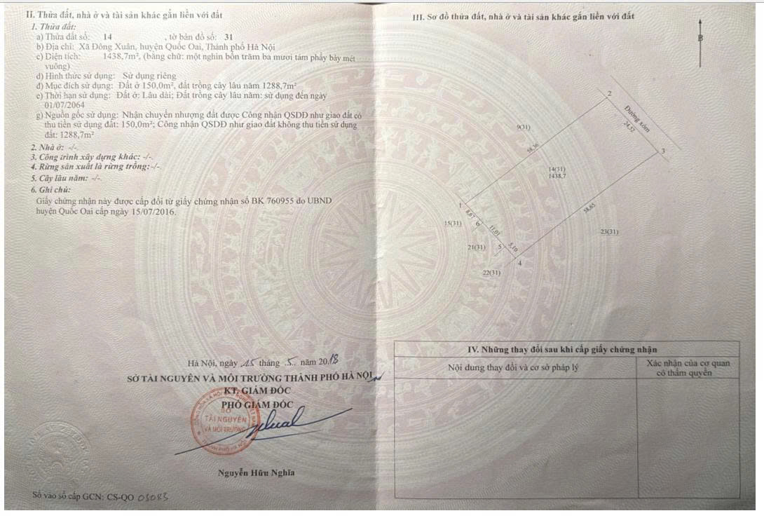 _ DT: 1.438,7m² ( 150m² đất ở lâu dài, 1.288,7m² đất trồng cây lâu năm),