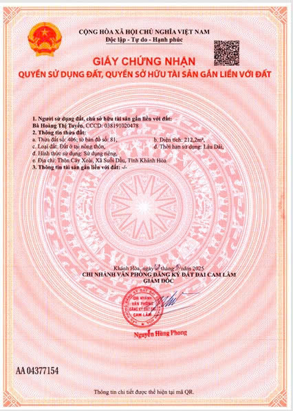► SIÊU PHẨM ĐẤT FULL THỔ – DIỆN TÍCH LỚN – GIÁ ĐẦU TƯ.♦ TỔNG DIỆN TÍCH: 1.632m² – 100% THỔ CƯ (ONT)♦ Mặt tiền khủng 35m, đất bằng phẳng, cực kỳ đẹp♦ ĐÃ TÁCH SẴN 7 SỔ RIÊNG – pháp lý chuẩn chỉnh, mua bán linh hoạt♦ VỊ TRÍ TIỀM NĂNG CAOCách KCN Suối Dầu chỉ 2kmKhu dân cư hiện hữu, hạ tầng hoàn chỉnhNhu cầu nhà ở – nhà trọ – kho xưởng cao, khai thác ngay♦ PHÙ HỢP✔ Đầu tư phân lô sinh lời✔ Xây nhà trọ cho công nhân KCN✔ Làm kho xưởng – giữ tài sản lâu dài♦ GIÁ CHỈ: 6 TỶ➡️ Tính ra chưa tới 3,7 triệu/m² – cực hiếm khu vực➡️ Có thương lượng cho khách thiện chí, chốt nhanh► Liên hệ: 0362 883 909 (Linh)► Hàng đẹp – pháp lý sạch – giá tốt, anh/chị quan tâm gọi xem đất trực tiếp là mê liền!