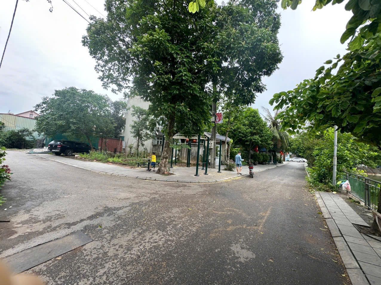 Ngay cạnh hồ điều hòa và dân chơi đu đưa thể dục, sinh hoạt cộng đồng.