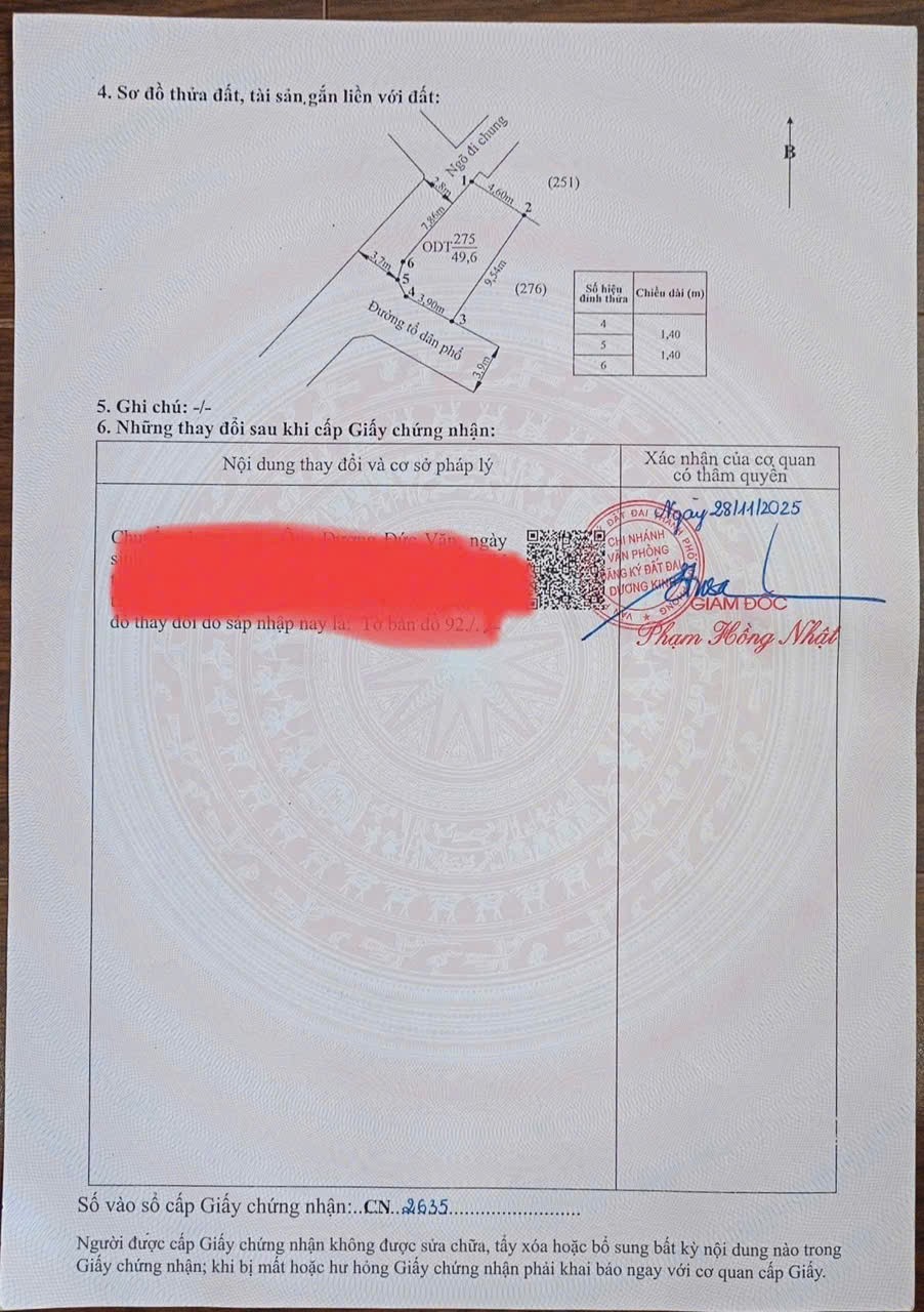 -Diện tích: 49,6m²-Vị trí: số 23 ngõ 22 phố Hoàng Thuyên, TDP Vọng Hải, Hưng Đạo, Dương Kinh-Đặc điểm: lô góc 2 mặt tiền, cả hai đều là ngõ thông-Đường trước đất: ngõ bê tông, ô tô ra vào thuận tiện-Khu vực: dân cư đông đúc, hạ tầng hoàn thiện-Tiện ích xung quanh: gần các tiện ích sinh hoạt hằng ngày-Pháp lý: sổ đỏ