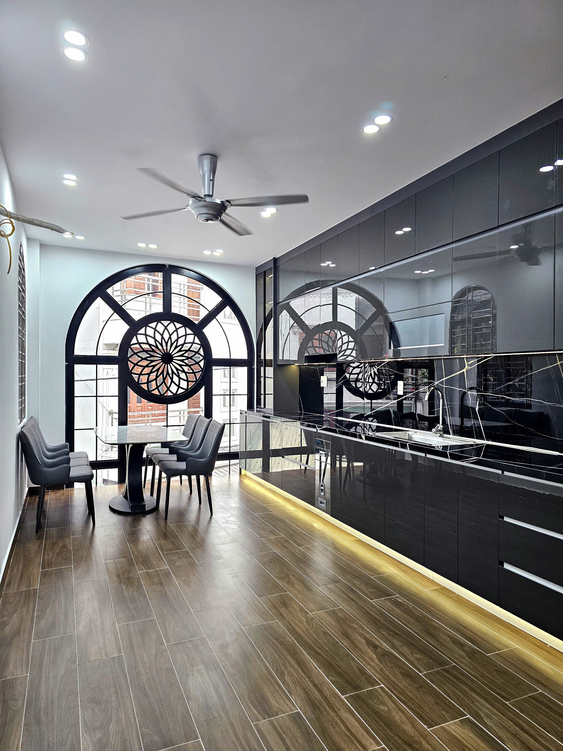Nhà xây 5 tầng kiên cố, trang bị thang máy tiện lợi, phù hợp ở kết hợp kinh doanh hoặc cho thuê.