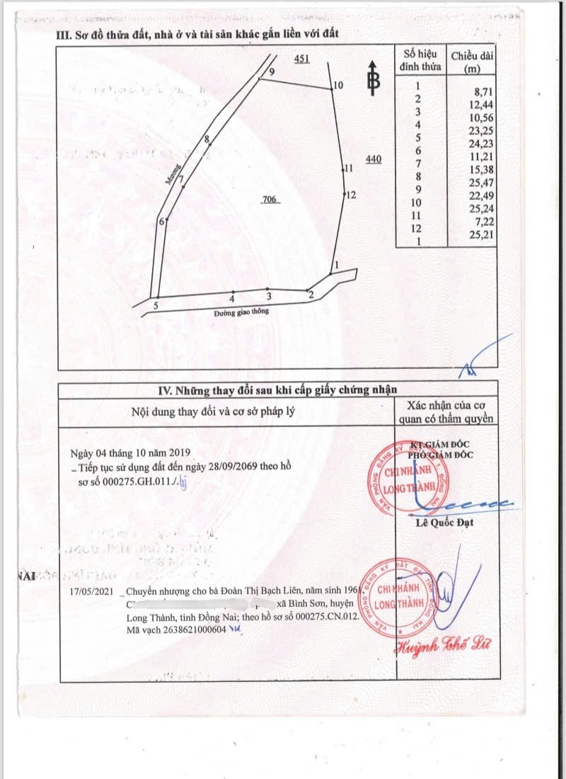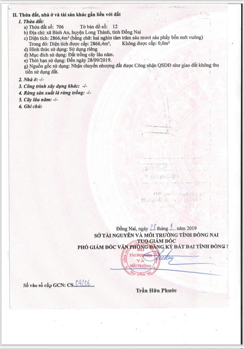 - Thửa đất số 706, tờ bản đồ: 12