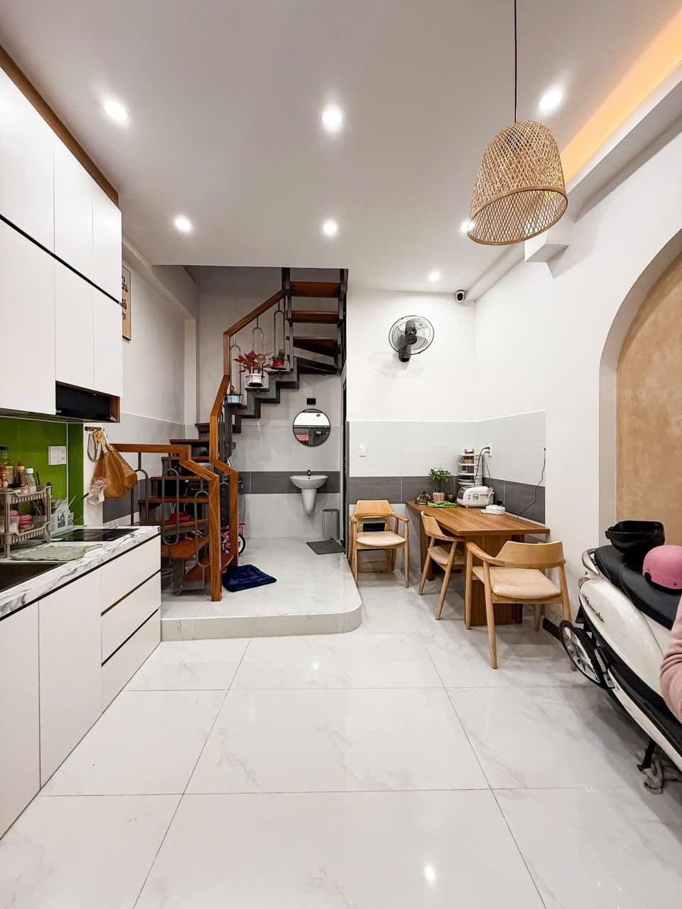 • Diện tích: 3.65m x 5.2m, tổng 19m², diện tích sử dụng khoảng 60m².