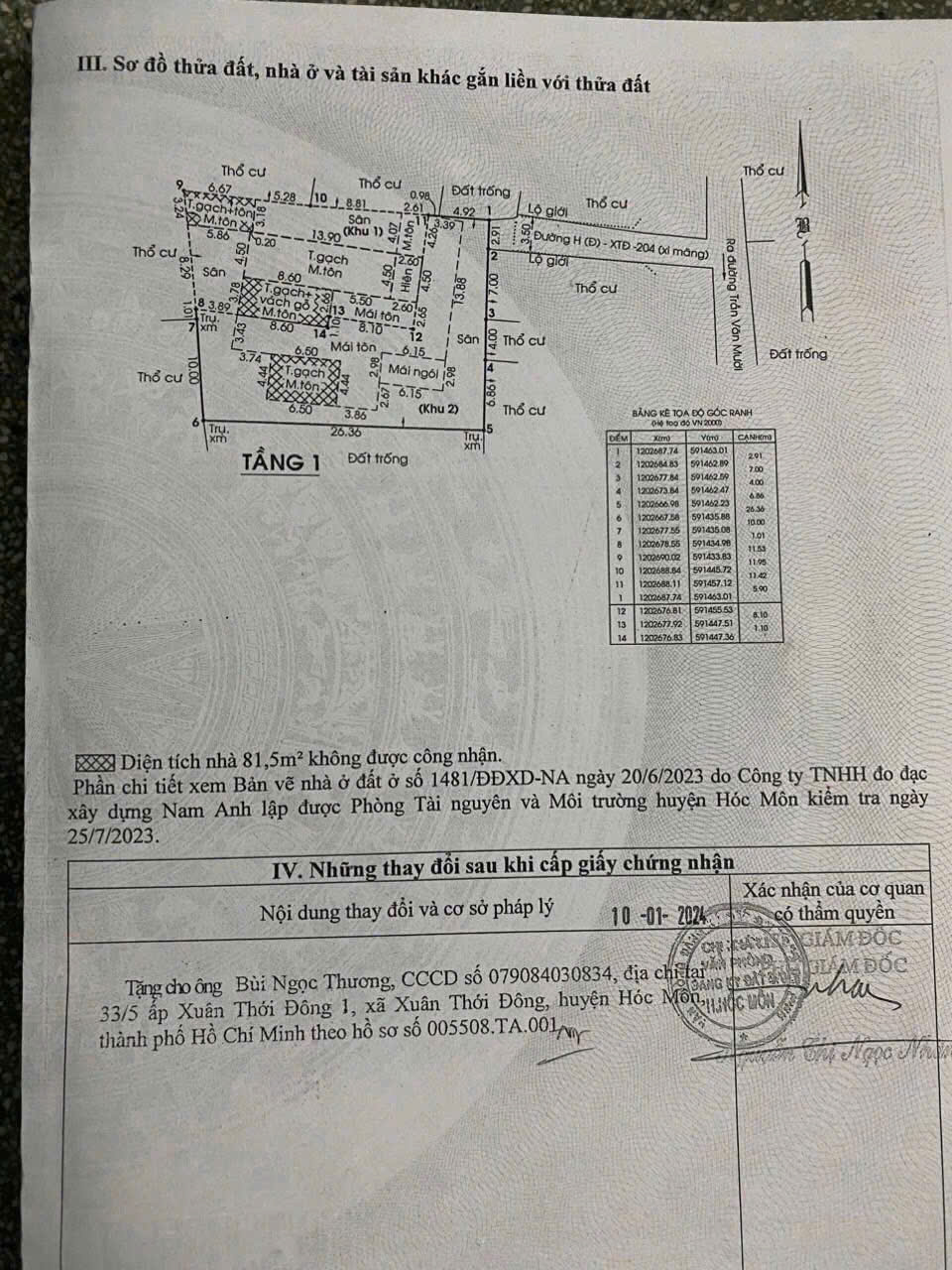 NHÀ & ĐẤT 1/ TRẦN VĂN MƯỜI, XUÂN THỚI ĐÔNG – HÓC MÔN