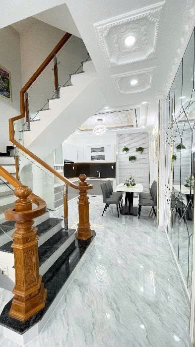 - Kết cấu: Nhà 1 trệt, 3 lầu, sân thượng trước, sau. 4PN, 1 phòng thờ, 5WC.