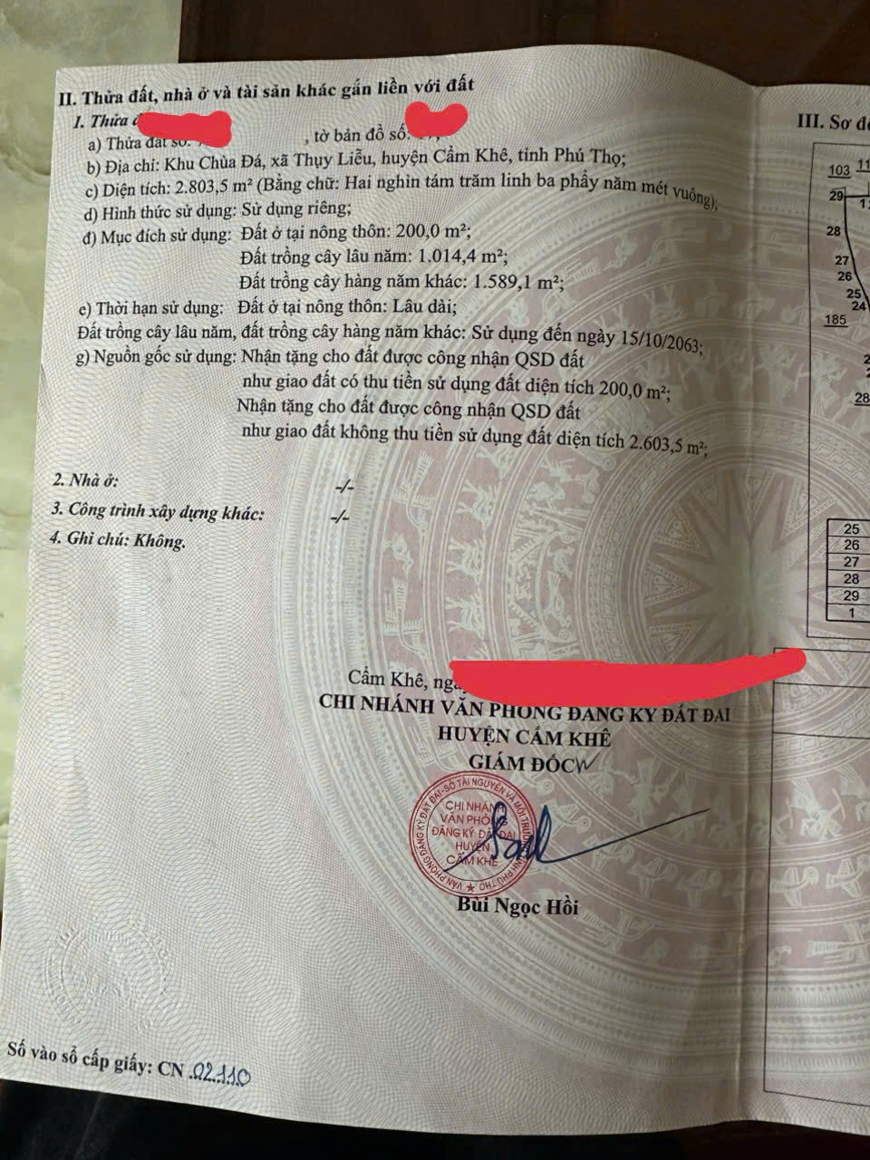 - Vị trí ĐẮC ĐỊA TẠI : Khu Chùa Đá - Xã Thụy Liễu - Huyện Cẩm Khê - Tỉnh Phú Thọ