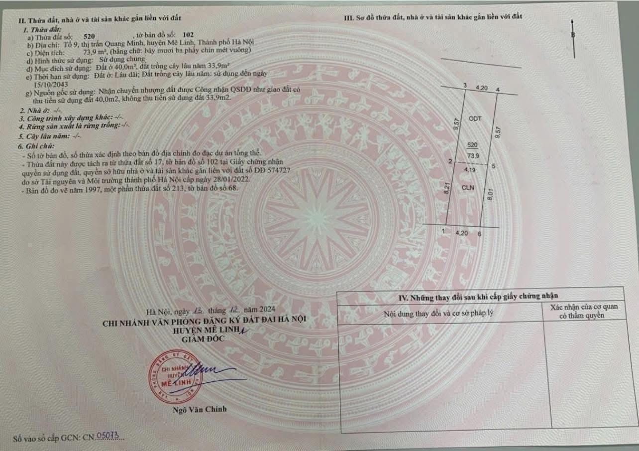 F0 - BÁN 74M BÌA LÀNG TỔ 10 TT QUANG MINH MÊ LINH.