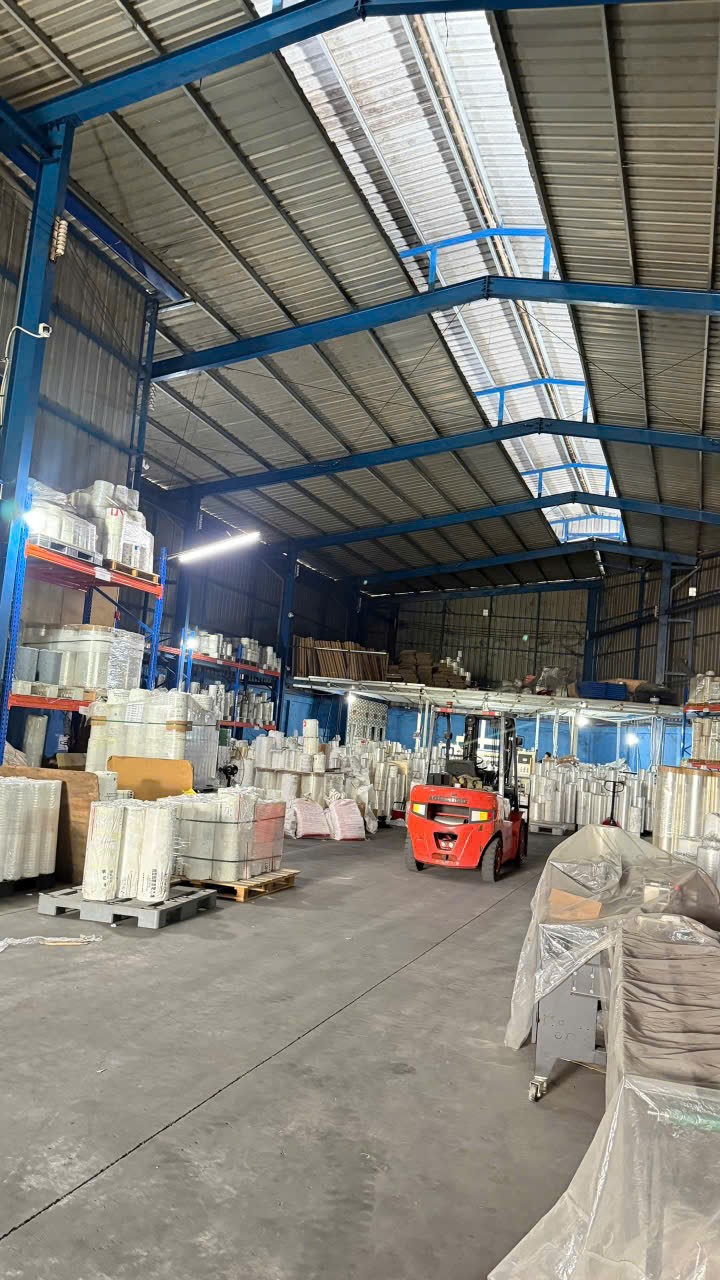 * Hiện trạng nhà xưởng cao thoáng chắc chắn , khung thép kiêng cố , trang bị đầy đủ tiện ích