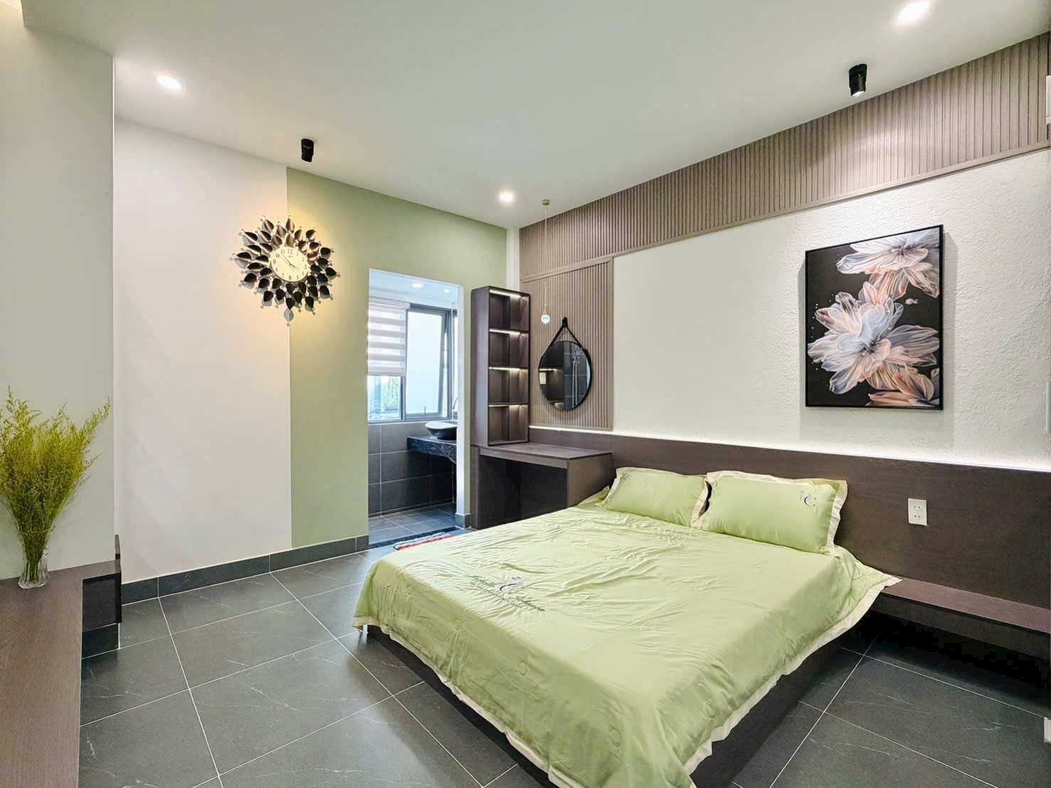 - Diện tích: 3.6❌18m, CN đủ 62m2 - Kết cấu: trệt 1 lầu sân thượng trước, 4 phòng ngủ (có pn dưới trệt), bếp khách, full nội thất đẹp như hình✨