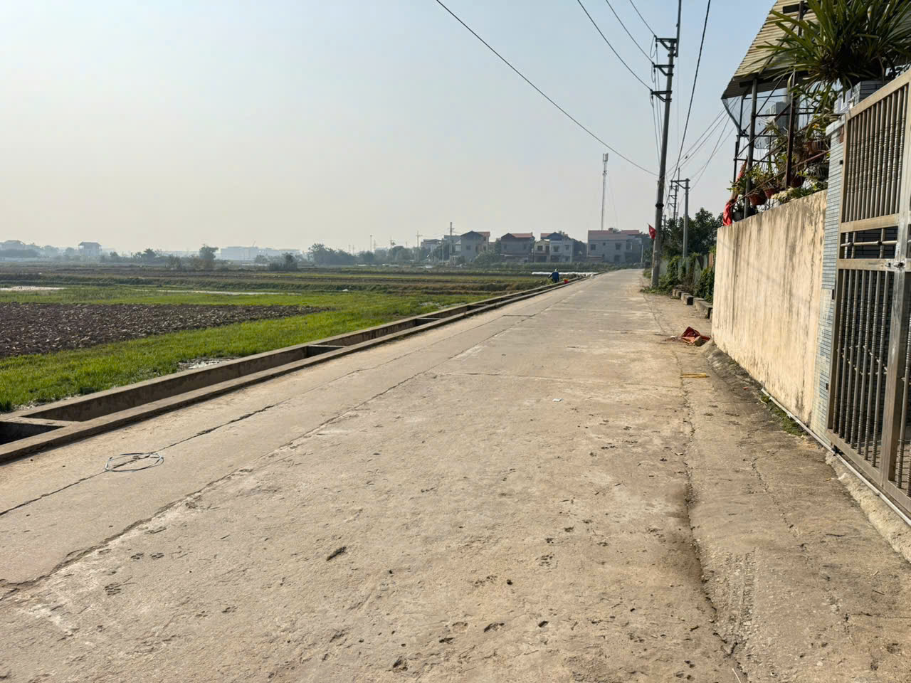 Cách 3 bước chân tới trục chính làng, đường rộng, ô tô tránh nhau.