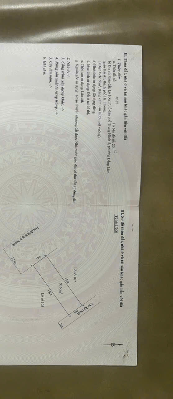Cần chuyển nhượng nhanh 2 lô đất liền kề mặt đường Bến Láng, vị trí ngay sát khu tái định cư Lô 17 Lê Hồng Phong, khu vực đang phát triển mạnh của Hải Phòng. Đây là khu đất có tiềm năng lớn, phù hợp xây nhà ở, mở cửa hàng kinh doanh, văn phòng đại diện hoặc đầu tư giữ tài sản lâu dài.