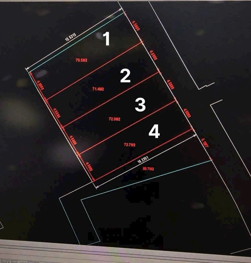 Diện tích: 4.5 x 16m (≈ 72m²/lô)