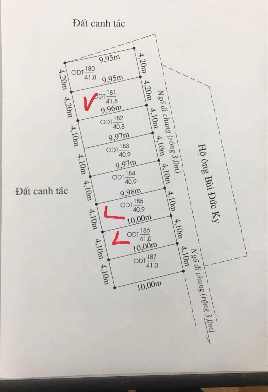 -Diện tích: 41m²-Mặt tiền: 4.1m, vuông vắn, xây dựng thoải mái-Đường: Ngõ thực tế 3m, ô tô vào tận cửa-Vị trí: Tuyến 2 đường Thượng Đức, phường Minh Đức, quận Đồ Sơn, TP. Hải Phòng-Cách mặt đường Thượng Đức chỉ 20m – vị trí trung tâm, cực hiếm-Khu dân cư hiện hữu, gần chợ, trường học, khu hành chính-Các lô đã xây quây rõ ràng – dễ nhận diện-Pháp lý: Sổ đỏ riêng từng lô, cam kết không dính quy hoạch-Giá bán: 8xx triệu/lô-Tiềm năng: Lô nhỏ dễ đầu tư, thanh khoản cực tốt – khu vực hạ tầng đang phát triển mạnh, giá trị đất tăng đều hàng năm