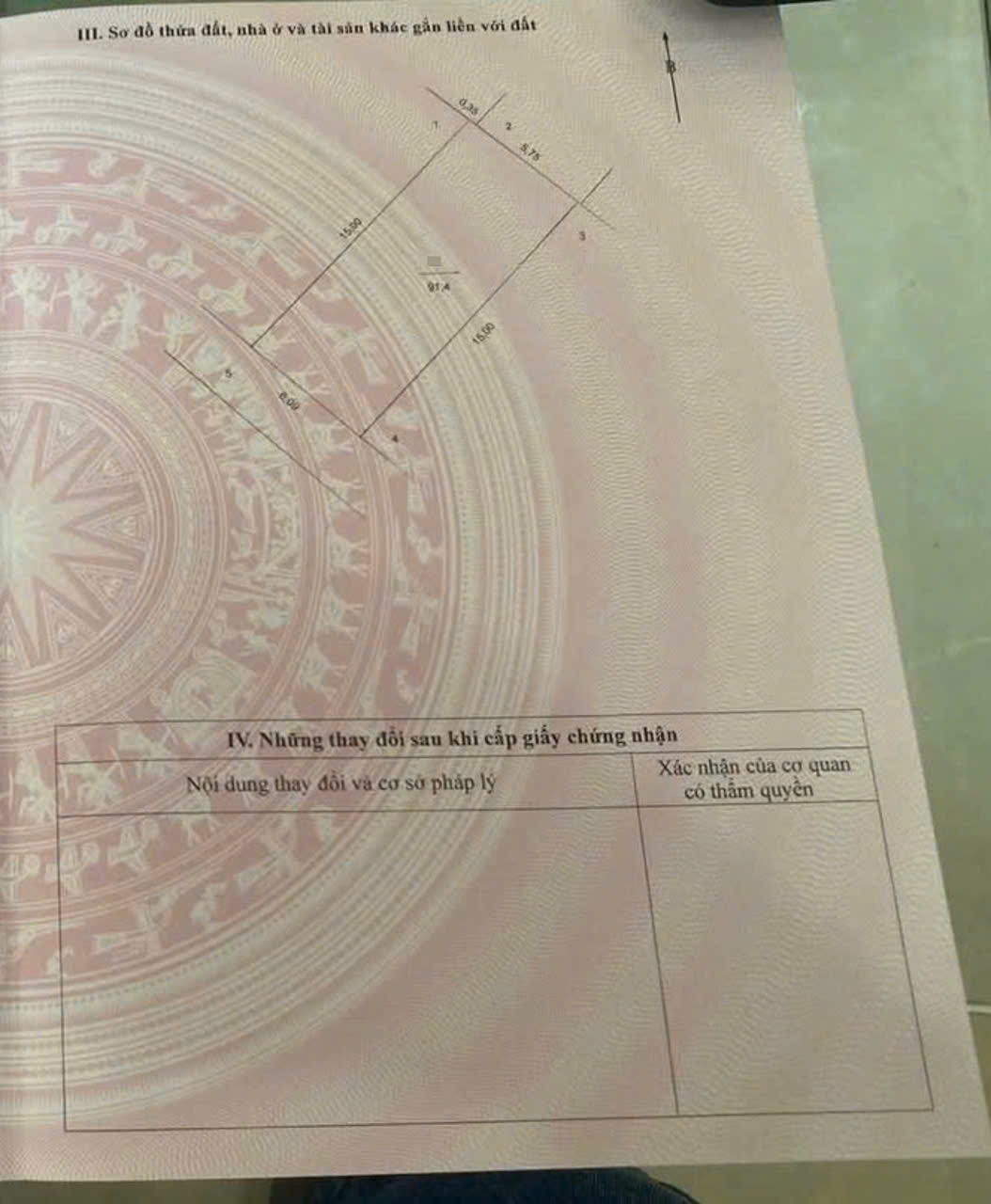 * Diện tích: 91m, mặt tiền 6m, hướng tây nam, đất ở 100%.