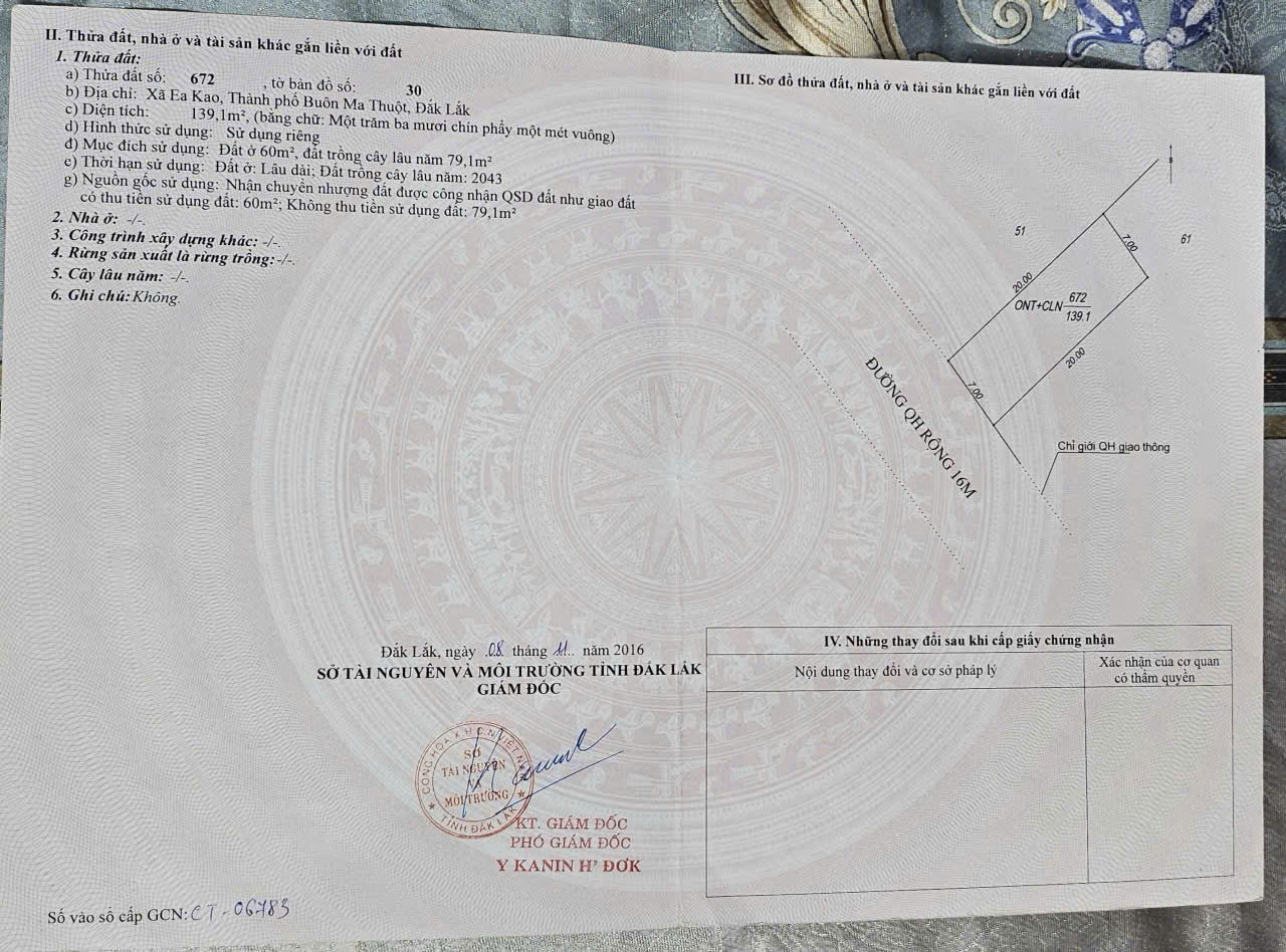* BÁN LÔ ĐẤT ĐẸP HIẾM – TỔ DÂN PHỐ 4 EAKAO ĐƯỜNG NHỰA 10M