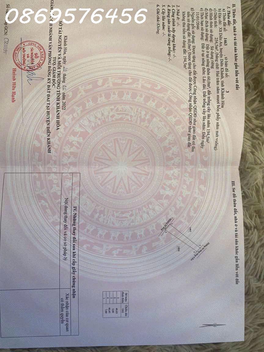 BÁN LÔ ĐẤT VƯỜN CÓ THỔ CƯ TẠI DIÊN KHÁNH, KHÁNH HOÀ