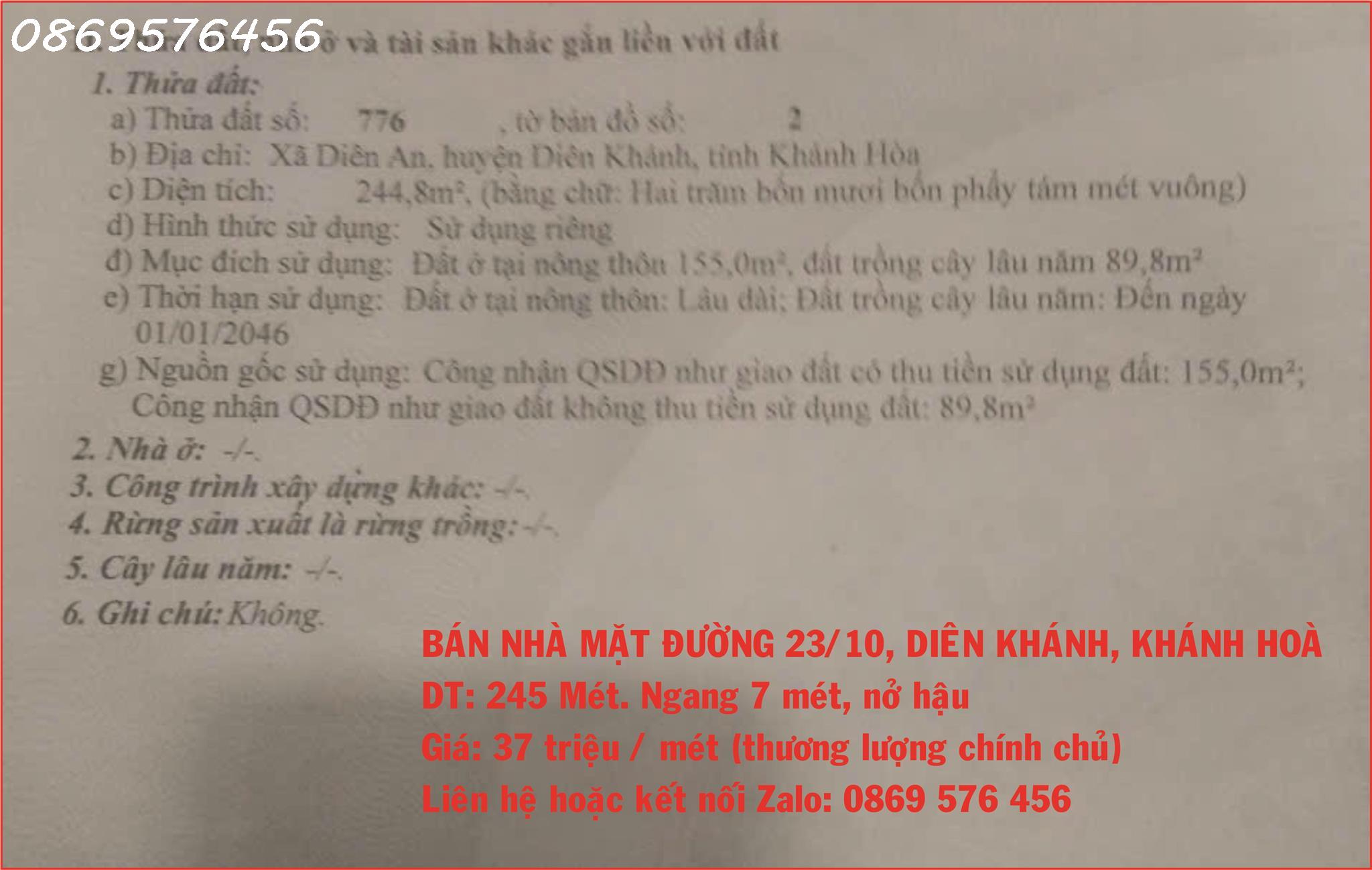 BÁN NHÀ MẶT ĐƯỜNG 23 THÁNG 10 NHA TRANG KHÁNH HÌA