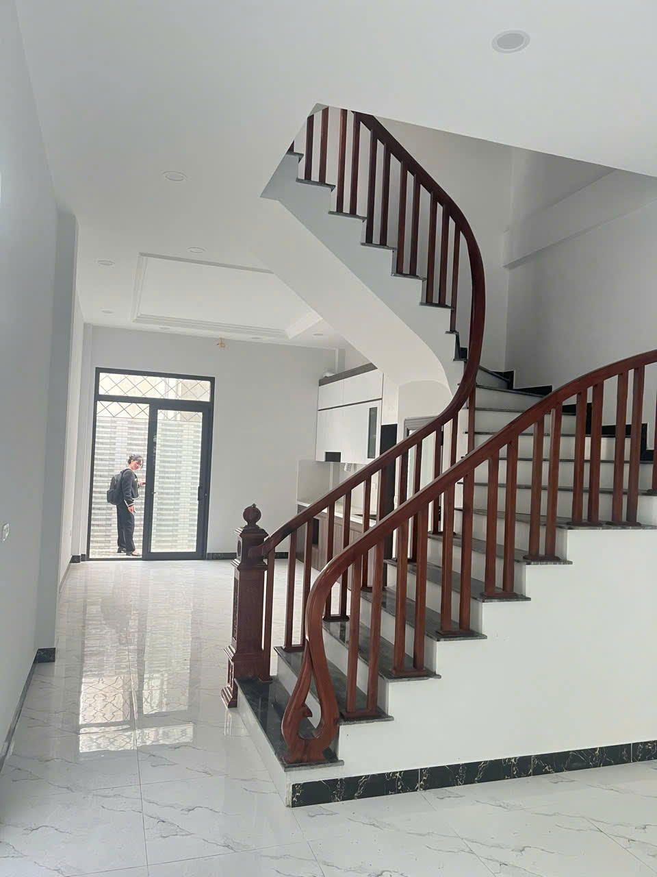 Sân để xe phía trước rộng rãi. Bên trong gồm phòng khách, khu bếp và phòng ăn, 1 nhà vệ sinh, cầu thang đặt giữa nhà.