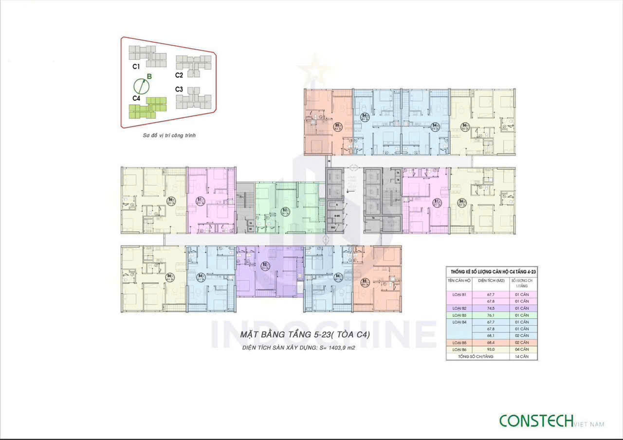 - Nếu khách hàng mong muốn căn góc, nhiều ánh sáng ngập tràn toàn bộ các phòng thì diện tích 68m2 tòa C4 căn B5 ( 68.4m2 ) là đẹp nhất